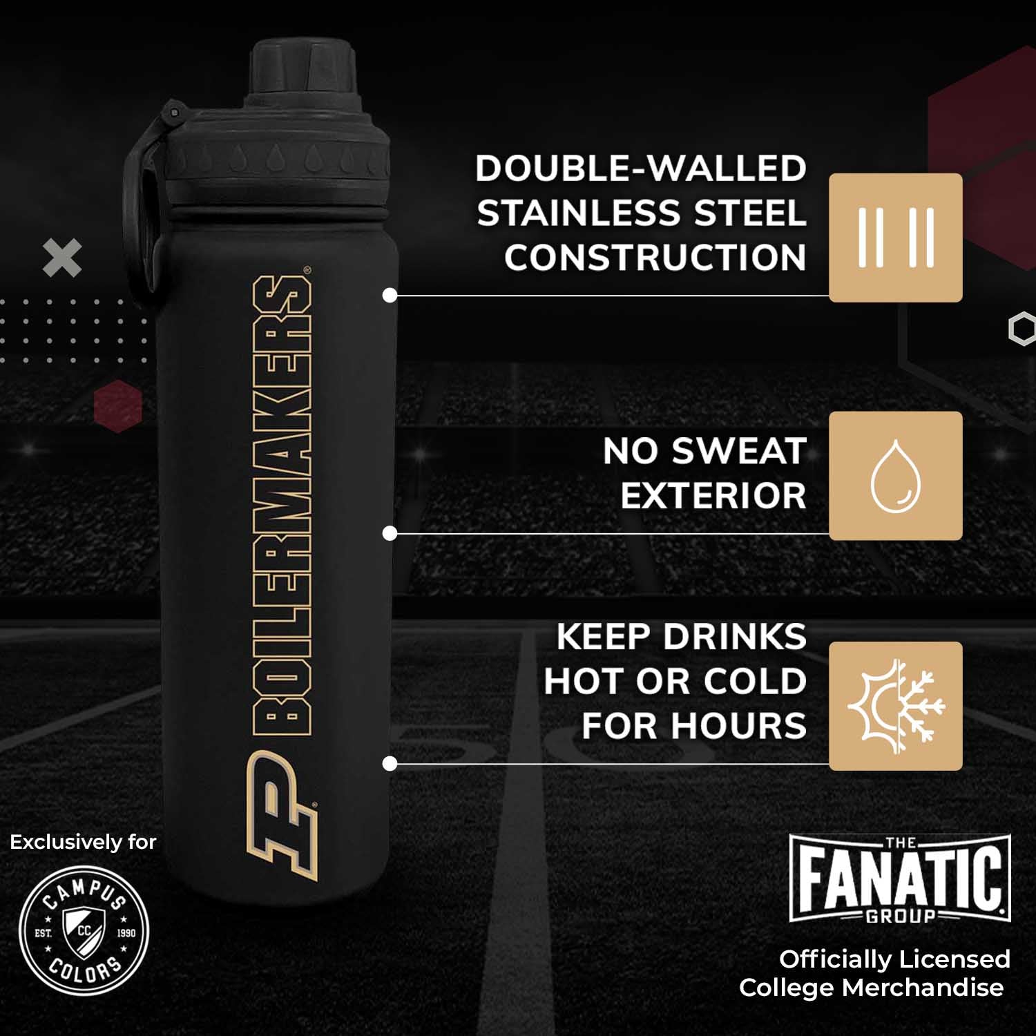 Purdue Boilermakers NCAA Stainless Steel Water Bottle - Black
