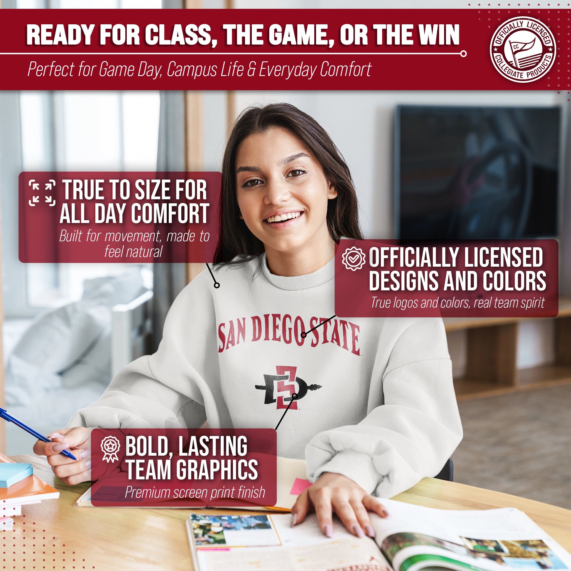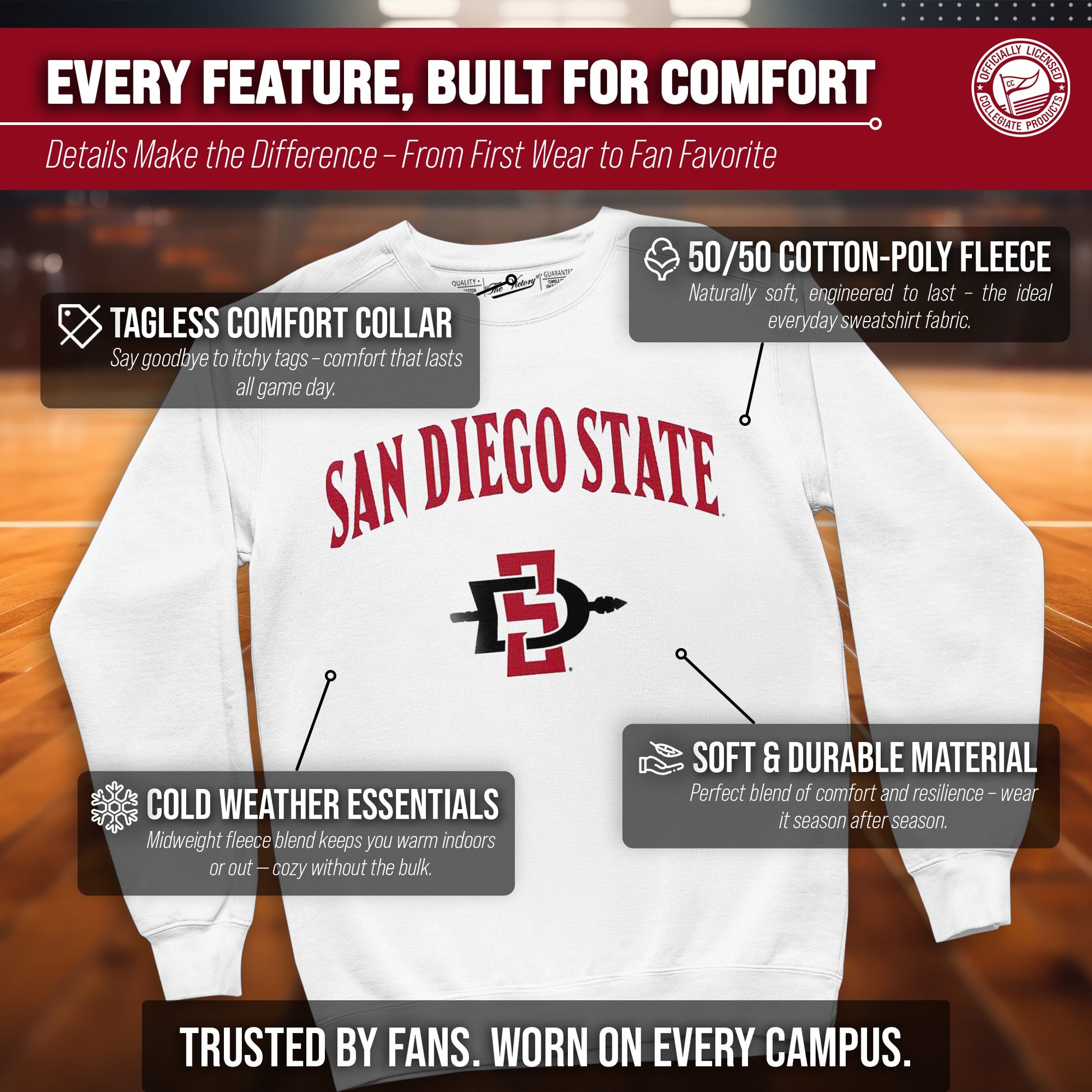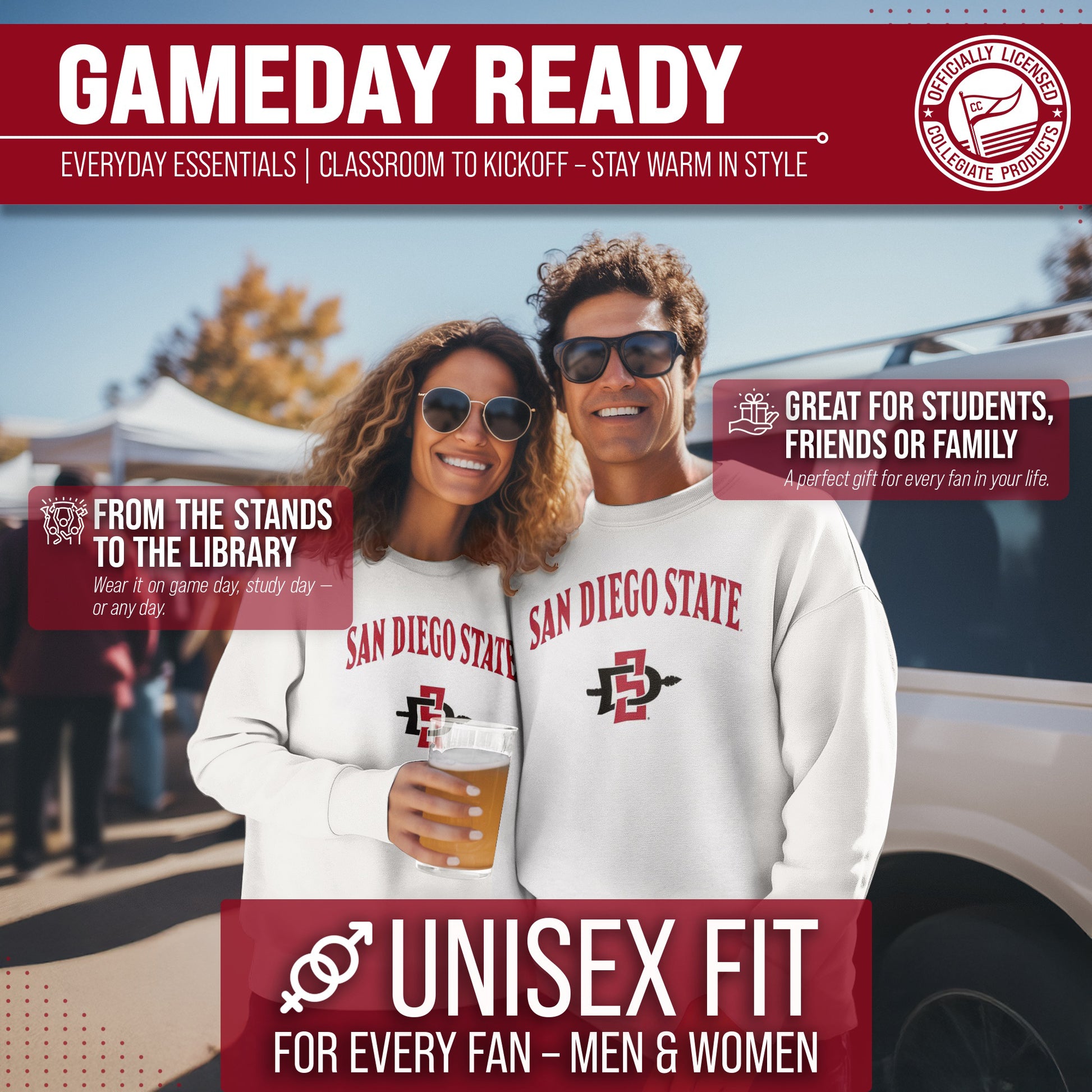 You know what's better than a perfect game? Scoring the best merch! Go ahead and show your team pride at the big game or any time! This premium-quality Gameday crew pullover is super comfy, fits both male and female adults, and comes in small, medium, large, XL, and XXL. So needless to say, it fits San Diego State Aztecs fans of all types! Maybe you aren't a San Diego fan but you know someone who is? Don't worry! This high-quality design machine washable unisex fit crew is perfect for anyone who loves their team. We use only the highest quality screen printing techniques to bring you the most comfortable, durable, and stylish team apparel possible. It doesn't matter if your headed to the next big game or just hanging out at home, the love of your favorite team never stops. So, make sure the everyone know who's the number one team you support. Our crew sweatshirts make the perfect gift for Father's Day, birthdays, Christmas, and more.