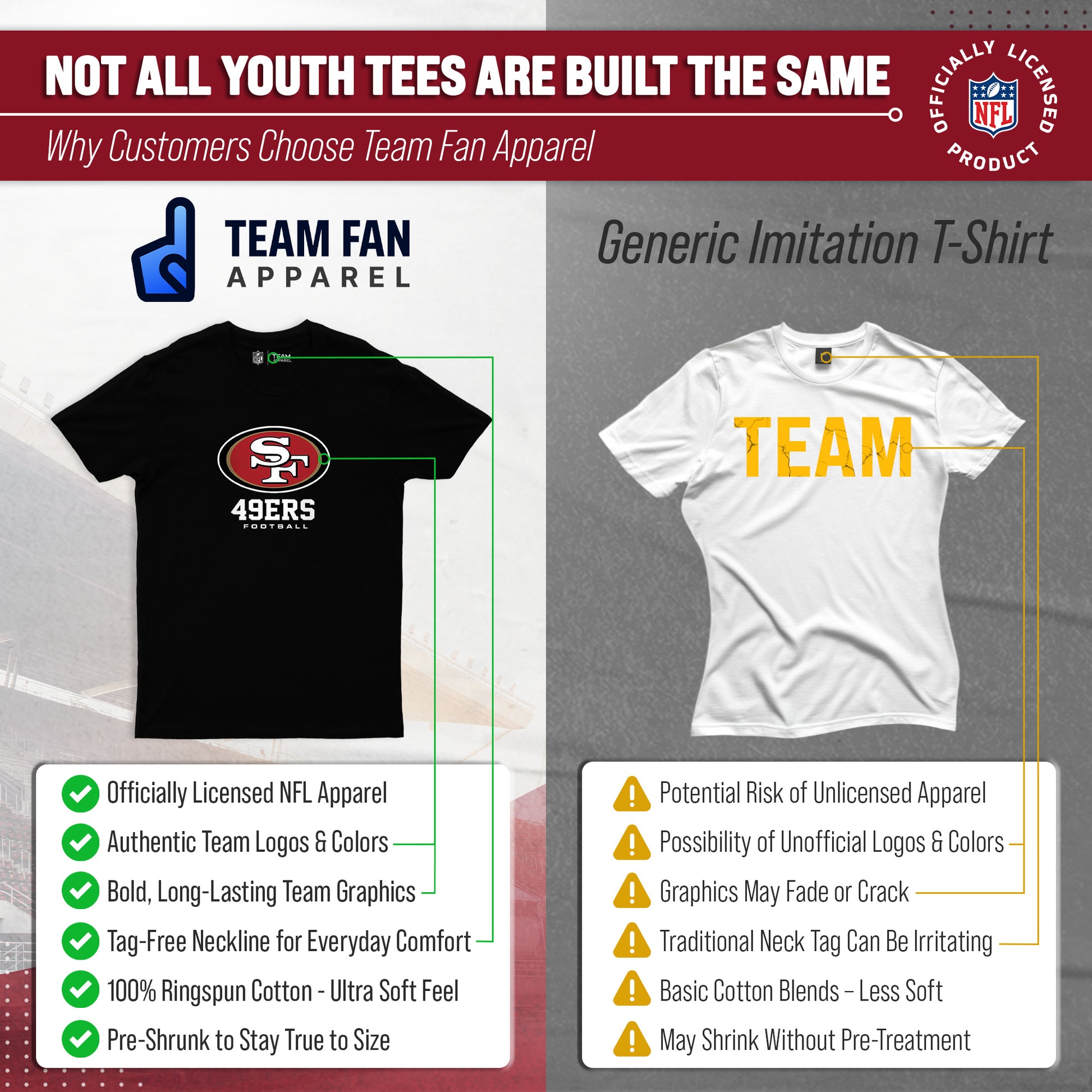 Score with Team Fan Apparel, the ultimate destination for officially licensed NFL apparel for all whether with youth or adult we got you covered . We use only the highest-quality screen printing techniques to bring you the most comfortable, durable, and stylish clothing possible. Go ahead and show your team pride at the big game or any time! This premium youth t-shirt comes in small, medium, large, XL. So needless to say, it fits young [team_long] fans of all types! Maybe you aren't a [team_nickname] fan but you know someone who is? Don't worry! This high-quality t-shirt is soft, lightweight, breathable, and a GREAT gift for any birthday or Christmas gift! So, if you want your young fan to feel bold and proud at the next big game or tailgate, you're going to want to be getting your hands on our [team_long] Youth Big Logo t-shirt today!