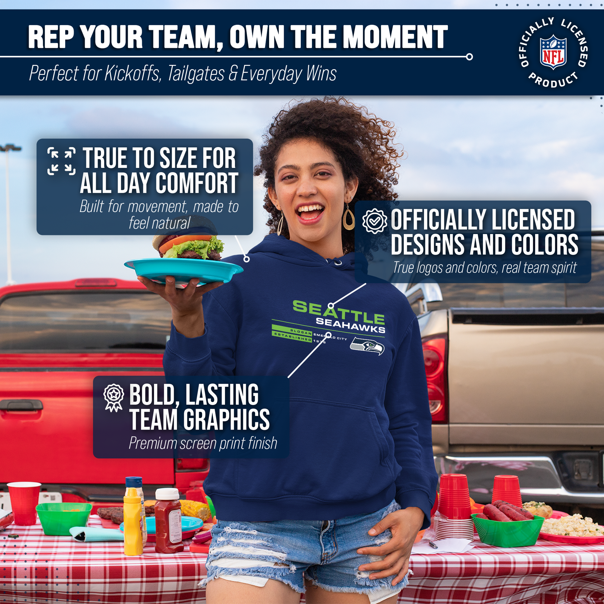 Seattle Seahawks Adult NFL Speed Stat Sheet Fleece Hooded Sweatshirt - Navy