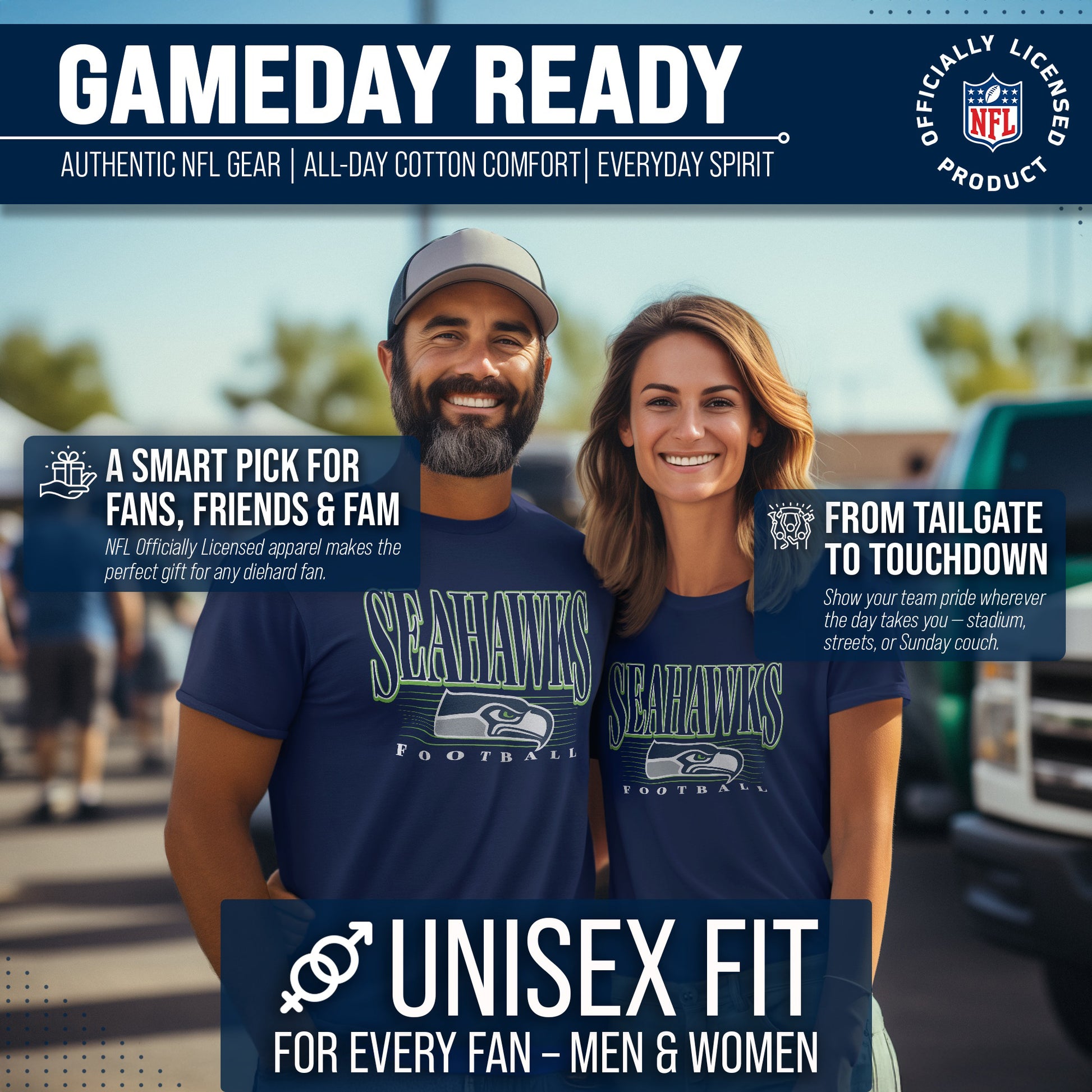 Show off your team spirit in style with our Team Fan Apparel Seattle Seahawks NFL Overtime Blueprint Tag-Less T-Shirt! Made for both men and women, this unisex t-shirt is the perfect addition to any football fan's wardrobe. With its soft and comfortable cotton blend fabric, you'll love wearing it to games or just lounging at home. The tag-less design ensures maximum comfort without any annoying tags scratching at your neck. Featuring a colorful logo with outlined text of your favorite team, this shirt will make you stand out from the crowd and show off your die-hard fandom. It comes in multiple sizes, so you can choose the one that fits best & represents your team spirit. Whether you're cheering on your Seahawks at the stadium or watching from home, our NFL Overtime Blueprint Tag-Less T-Shirt is a must-have for all fans! So grab yours today and support your team in comfort and style. Go team!