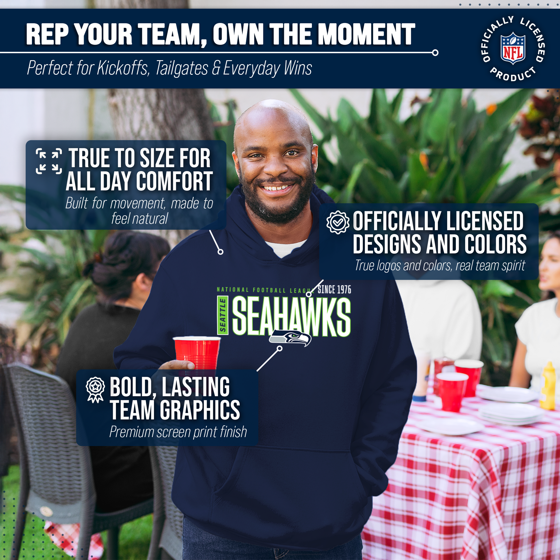 Get Ready to Show Your Team Spirit in the Most Comfortable Way Possible with Team Fan Apparel's Seattle Seahawks NFL Modern Endzone Hooded Sweatshirt! Made with ultra-soft fleece material, this hooded sweatshirt is perfect for game days or just lounging around the house. With its unique design and performance material, you can proudly represent your favorite team wherever you go. Not only is it officially licensed by the NFL, but it also comes in adult unisex sizing so both men and women can rock their team pride. The endzone design adds a modern touch to your gameday attire, making you stand out from the crowd. So why settle for a basic sweatshirt when you can show off your style and support your team at the same time? Grab your NFL Modern Endzone Hooded Sweatshirt from Team Fan Apparel today and get ready to cheer on your Seahawks in ultimate comfort!
