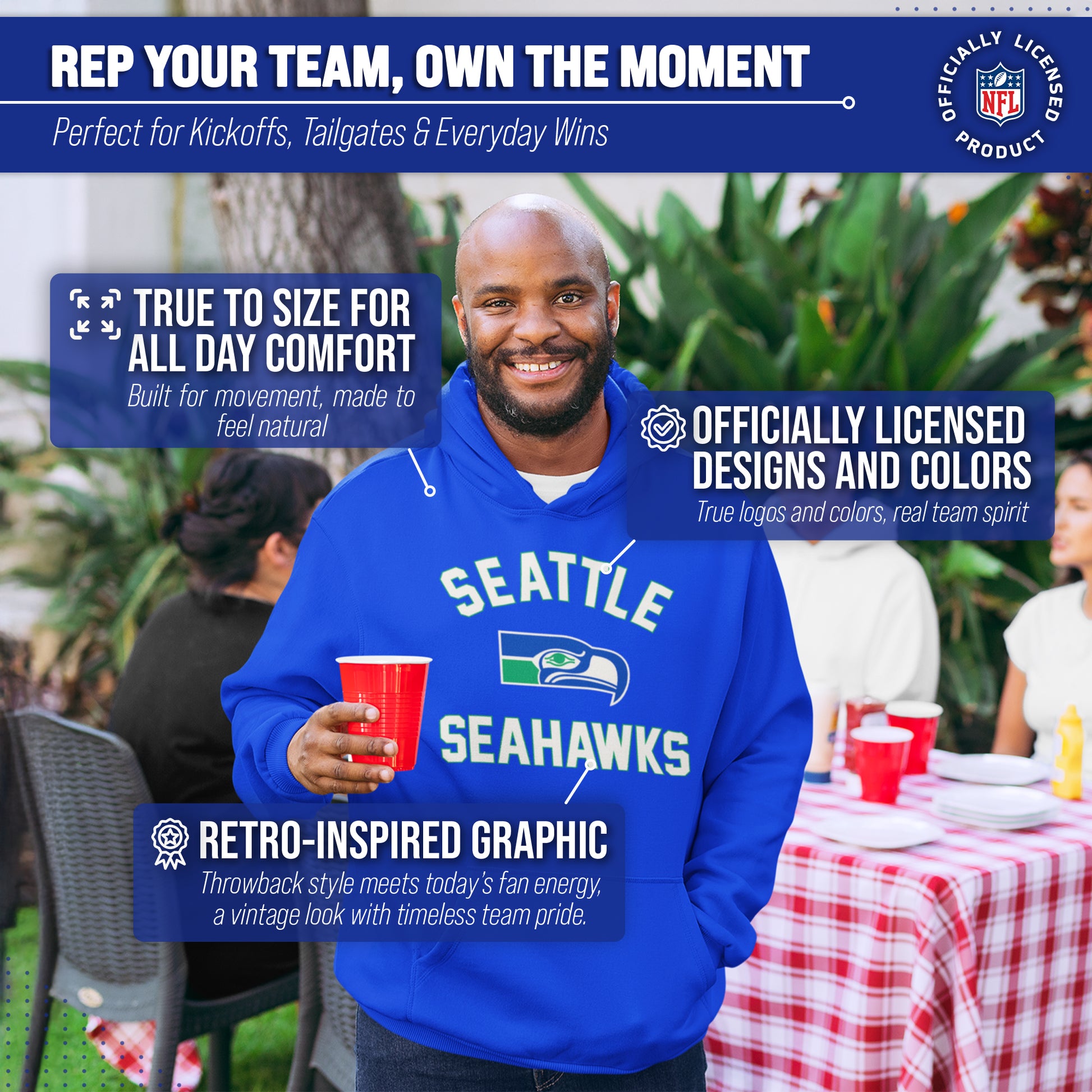Seattle Seahawks NFL Adult Unisex Retro Gameday Ultra Soft Fleece Hooded Sweatshirt - Royal
