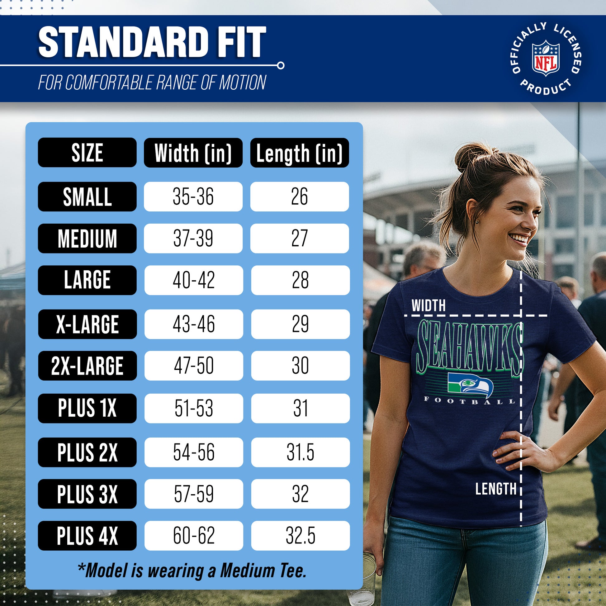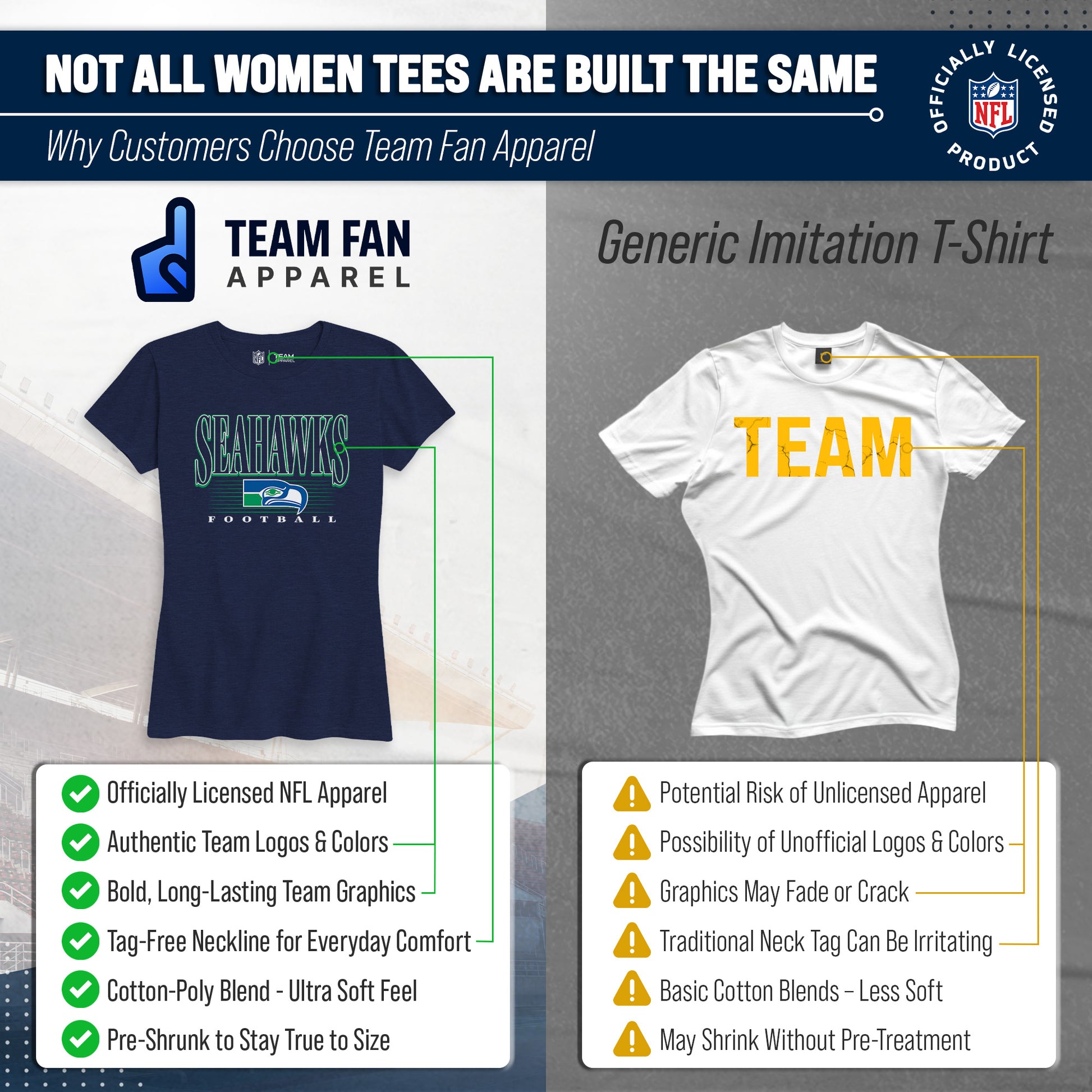 Calling all ladies! Get ready to rock game day with the Women's Team Fan Apparel Overtime Blueprint T-Shirt! This comfortable and stylish Seattle Seahawks womens tee is perfect for any female football fan, whether you're cheering on your favorite team at the stadium or watching from home. Made from a super soft cotton fabric , this shirt will keep you cool and comfortable all game long. The text, logo and official team color adds a touch of retro flair, while the tag-less design ensures itch-free wear. Whether you're a die-hard fan or just love a good classic look, this shirt is perfect for showing off your team spirit. Available in a wide range of women's sizes, it's suitable for all shapes and sizes! So grab your girlfriends and get ready to cheer on your team in style with the Women's Team Fan Apparel Overtime Blueprint T-Shirt!