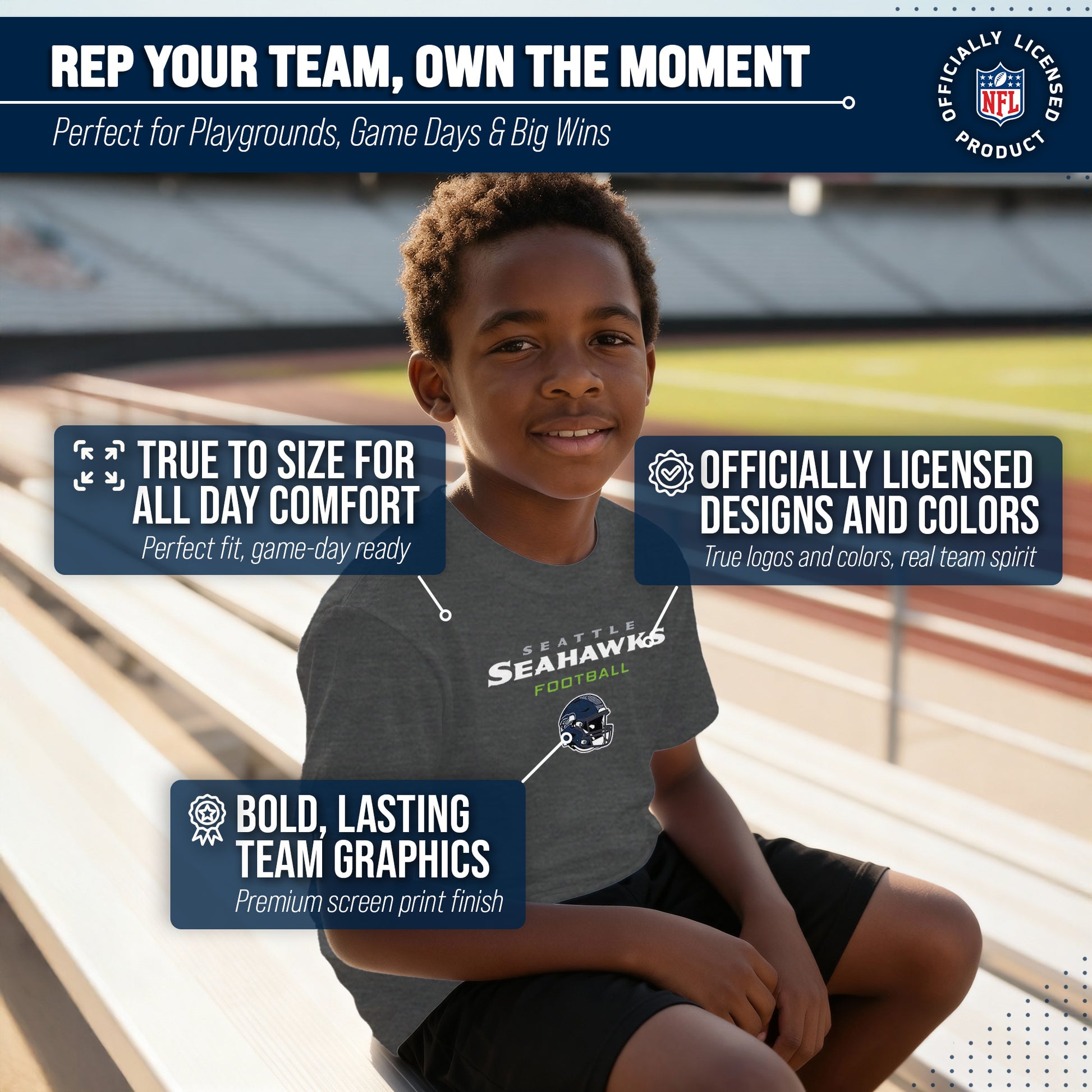 Seattle Seahawks NFL Youth Football Helmet Tagless T-Shirt - Charcoal