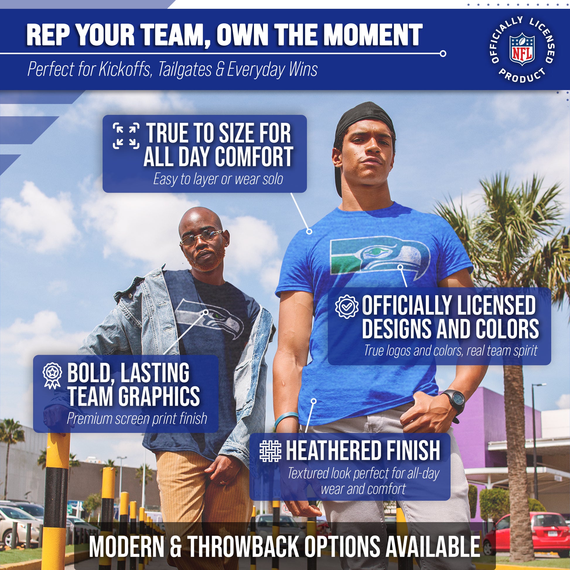 Looking for a comfortable, lightweight tee with a Seattle Seahawks design? Look no further than the Modern Throwback Tee. This Seahawks t-shirt is made of cotton and polyester. It features the officially licensed Seahawks logo in a trendy design. It's designed and printed in the USA and is perfect for men or women. This tagless Seahawks shirt is beyond comfortable and will keep you looking and feeling your best while you cheer on your favorite football team on game day. If you are looking for the best Seattle Seahawks gifts for men, Seattle Seahawks for women, pro football Seattle Seahawks shirts, football tshirts, men's and womens Seahawks t-shirts, football merchandise Seattle Seahawks gear for men and women, lightweight & tagless Seattle Seahawks shirts, or Seattle Seahawks apparel, look no further than this Seattle Seahawks short sleeve fan shirt. It makes the perfect Father's Day or Christmas gift for Seattle Seahawks fans.