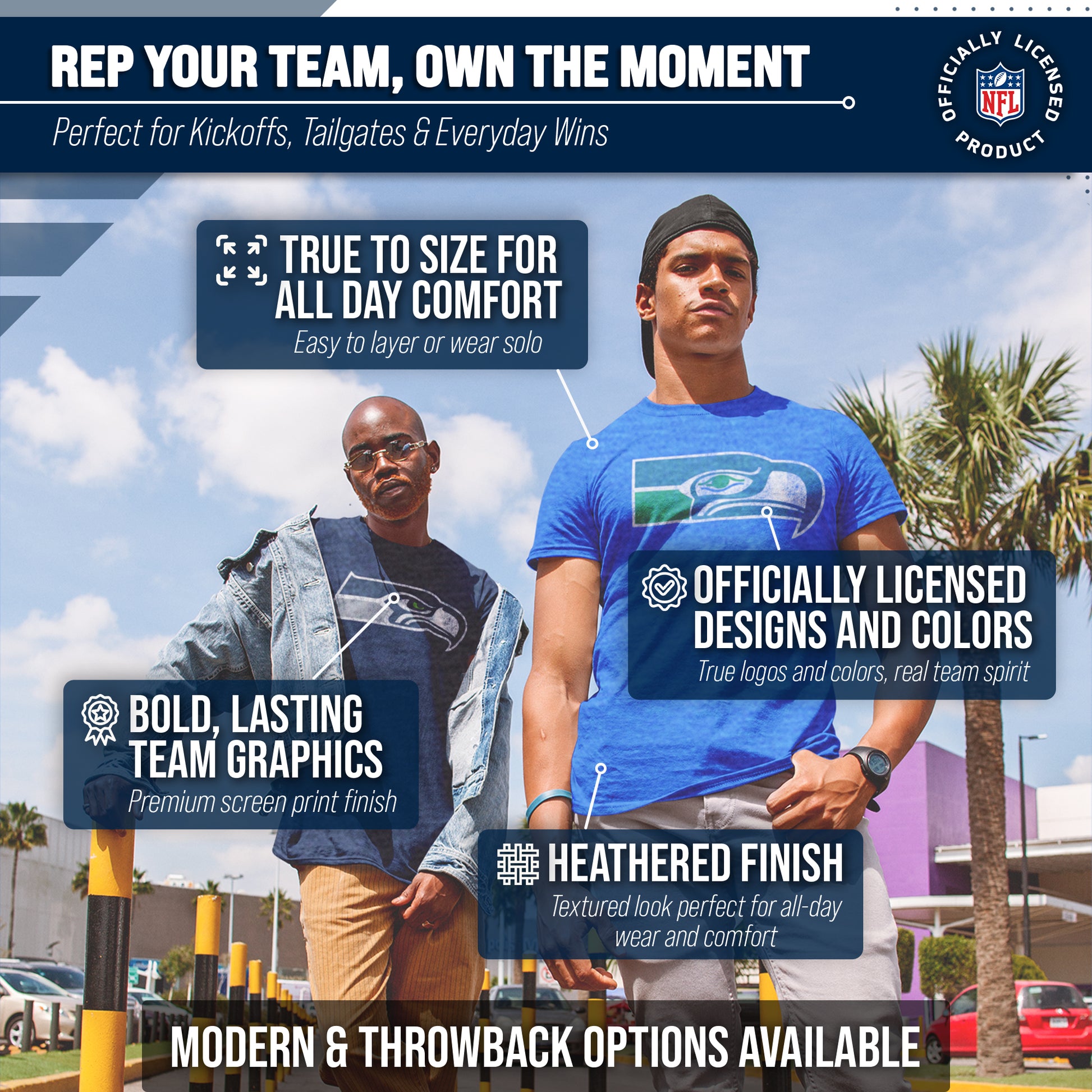 Looking for a comfortable, lightweight tee with a Seattle Seahawks design? Look no further than the Modern Throwback Tee. This Seahawks t-shirt is made of cotton and polyester. It features the officially licensed Seahawks logo in a trendy design. It's designed and printed in the USA and is perfect for men or women. This tagless Seahawks shirt is beyond comfortable and will keep you looking and feeling your best while you cheer on your favorite football team on game day. If you are looking for the best Seattle Seahawks gifts for men, Seattle Seahawks for women, pro football Seattle Seahawks shirts, football tshirts, men's and womens Seahawks t-shirts, football merchandise Seattle Seahawks gear for men and women, lightweight & tagless Seattle Seahawks shirts, or Seattle Seahawks apparel, look no further than this Seattle Seahawks short sleeve fan shirt. It makes the perfect Father's Day or Christmas gift for Seattle Seahawks fans.