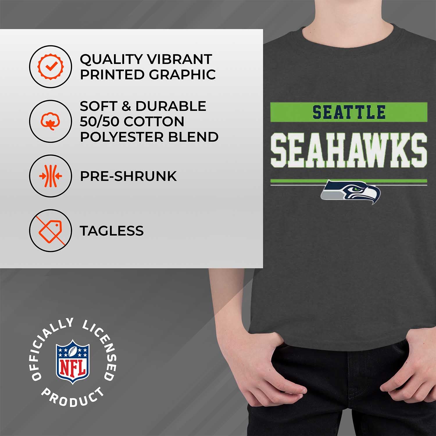 Seattle Seahawks NFL Youth Short Sleeve Charcoal T Shirt - Charcoal