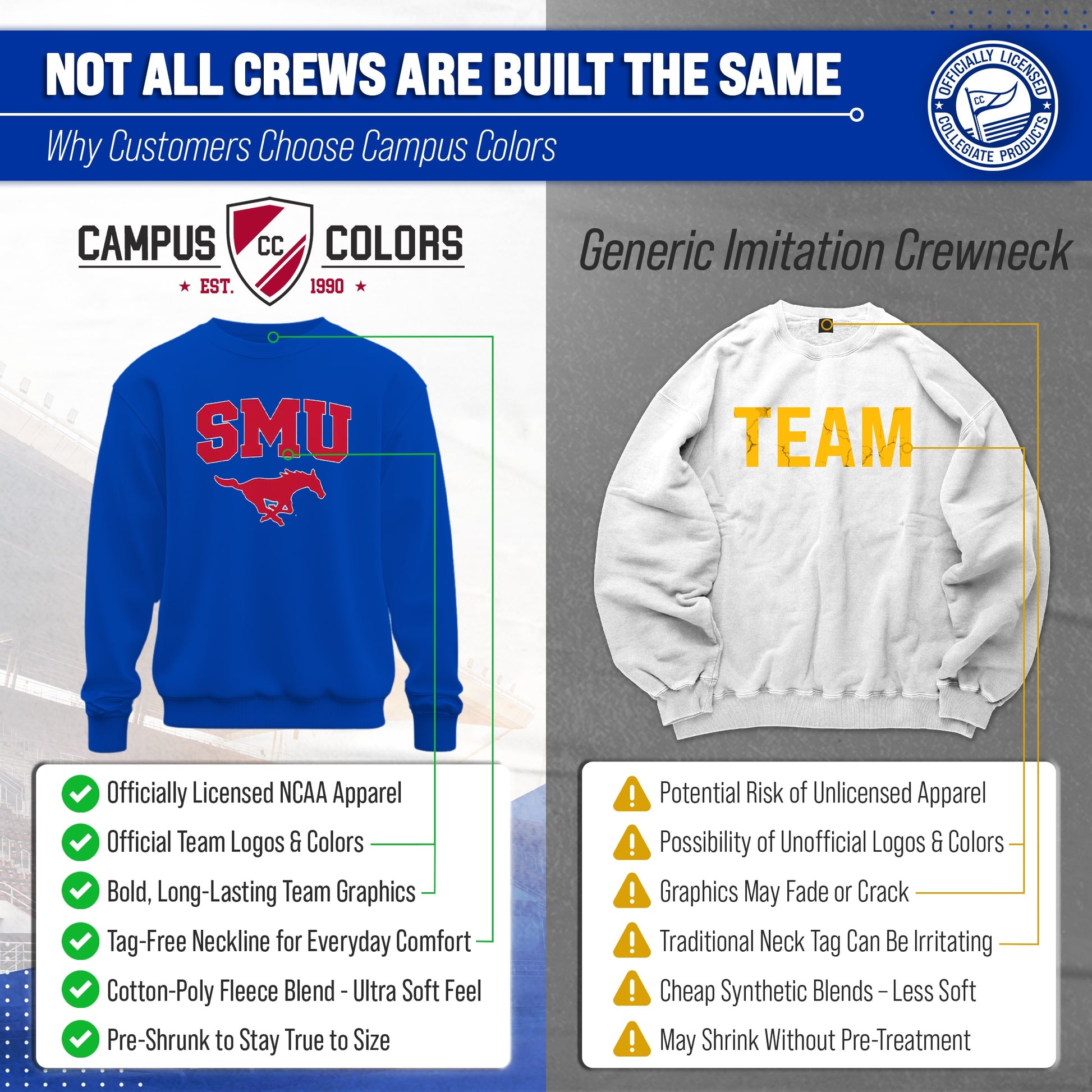 SMU Mustangs Campus Colors Adult Arch & Logo Soft Style Gameday Crewneck Sweatshirt - Royal
