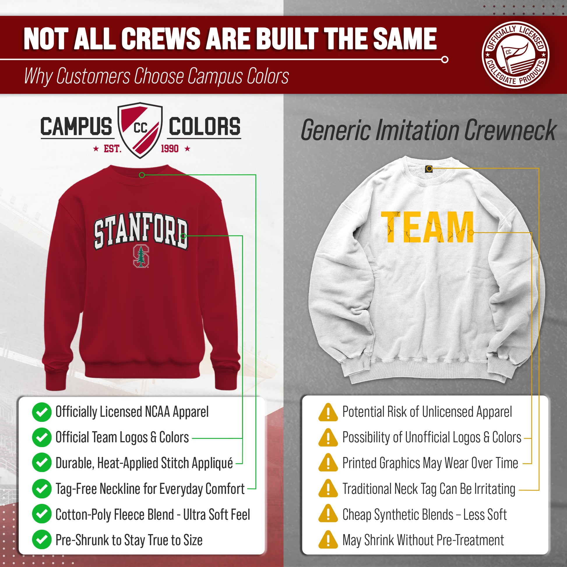 The Stanford Cardinal Adult Tackle Twill Crewneck Sweatshirt is super comfortable, runs true to size, and is great for showing off your school pride. All crewneck pullovers are a fan favorite and look fresh after many years. The Cardinal crewneck sweatshirt has a unisex fit that is ideal for both men and women. The embroidered university logo and name will stay crisp wear after wear. Our college crewneck sweatshirt is ideal when thrown over a t-shirt for football tailgates, games, when the temperature drops, or when you just want to show off your team spirit! The university crewneck sweatshirt is the perfect gift for any college student, upcoming graduate, alumnus or sports fan. Made with quality material, the double letter embroidered university logo is made of precise laser cut appliques applied with heat that will stay crisp wear after wear. All logos and colors are NCAA officially licensed. Our Stanford Cardinal crewneck is essential collegiate apparel for showing off your school or team pride. Lightweight college crewneck sweatshirt is made from a dual blend of 50% cotton and 50% polyester that is ideal for that tailgate or game day when the temperature drops. Cheer on your Cardinal in style!