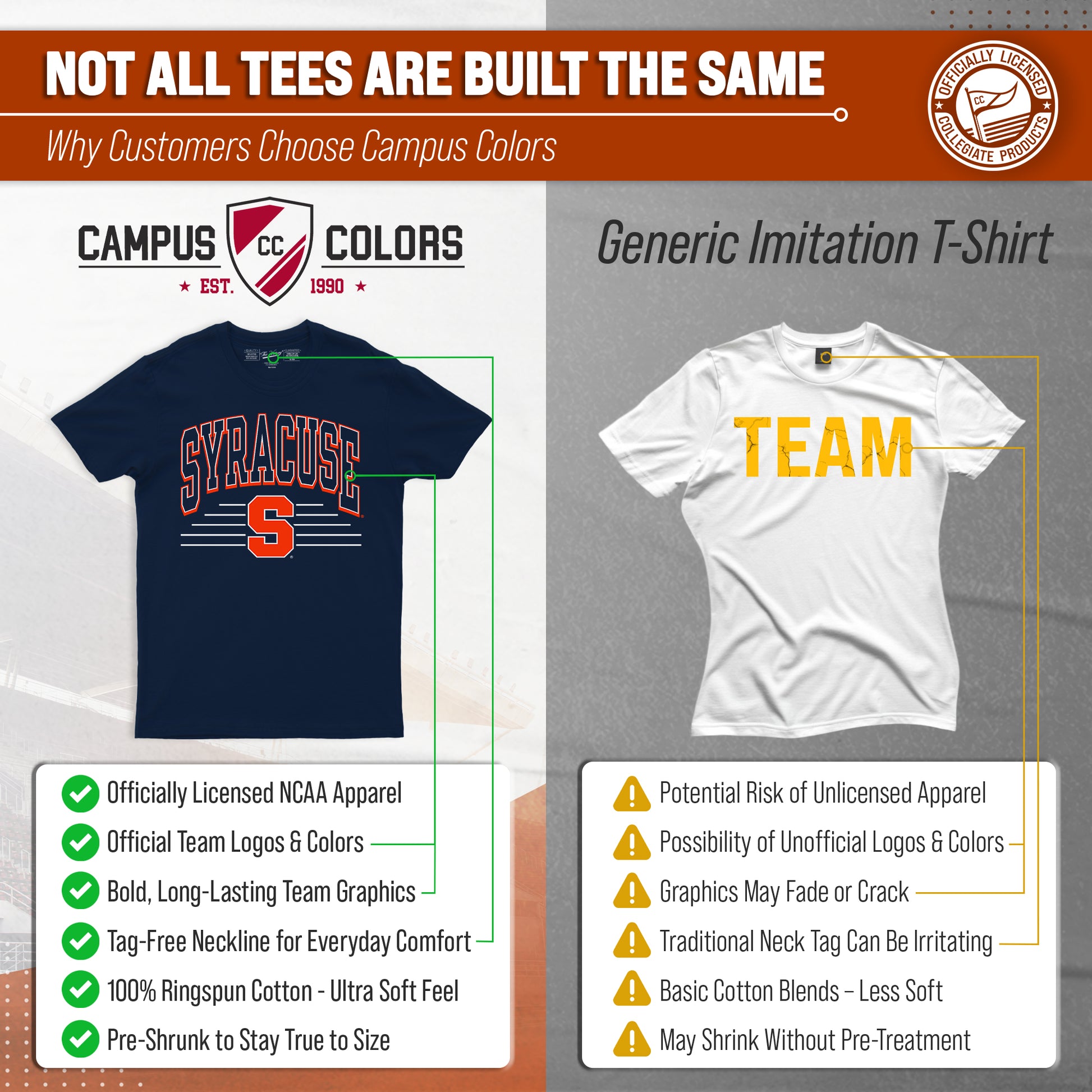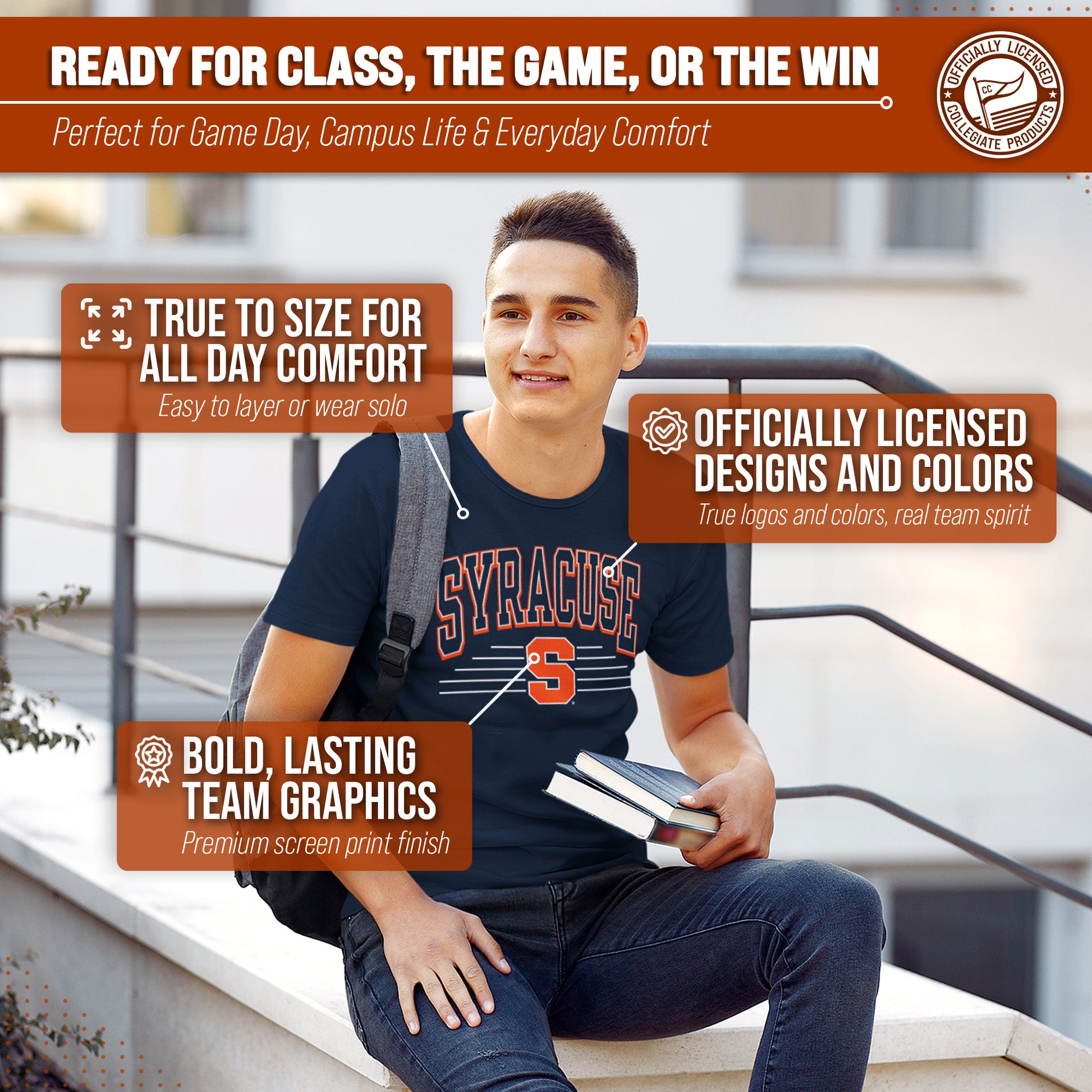 Go Team, Go! Show off your school spirit with the NCAA Adult Unisex Overtime Classics Syracuse Orange T-Shirt! Our officially licensed apparel will have you feeling like a member of the team!   Made from comfortable and breathable cotton and featuring a teamcolor garment, this t-shirt is perfect for game days, tailgates, or just lounging around. The tag-less design ensures ultimate comfort and no annoying tags to distract you from cheering on your team. Perfect for wearing to the big game, watching from home, hanging with friends, or even working out! Our Overtime CLassics Syracuse Orange shirt makes a great gift for yourself, or any Orange fan in your life!   Our shirts are made from ringspun cotton for a soft feel against your skin and features a classic design highlighting your favorite college team. With short sleeves and a variety of sizes to choose from, these t-shirts are perfect for men and women alike. So gear up for game day with the NCAA Adult Unisex Overtime Classics T-Shirt - the perfect addition to any Syracuse Orange fan's wardrobe!
