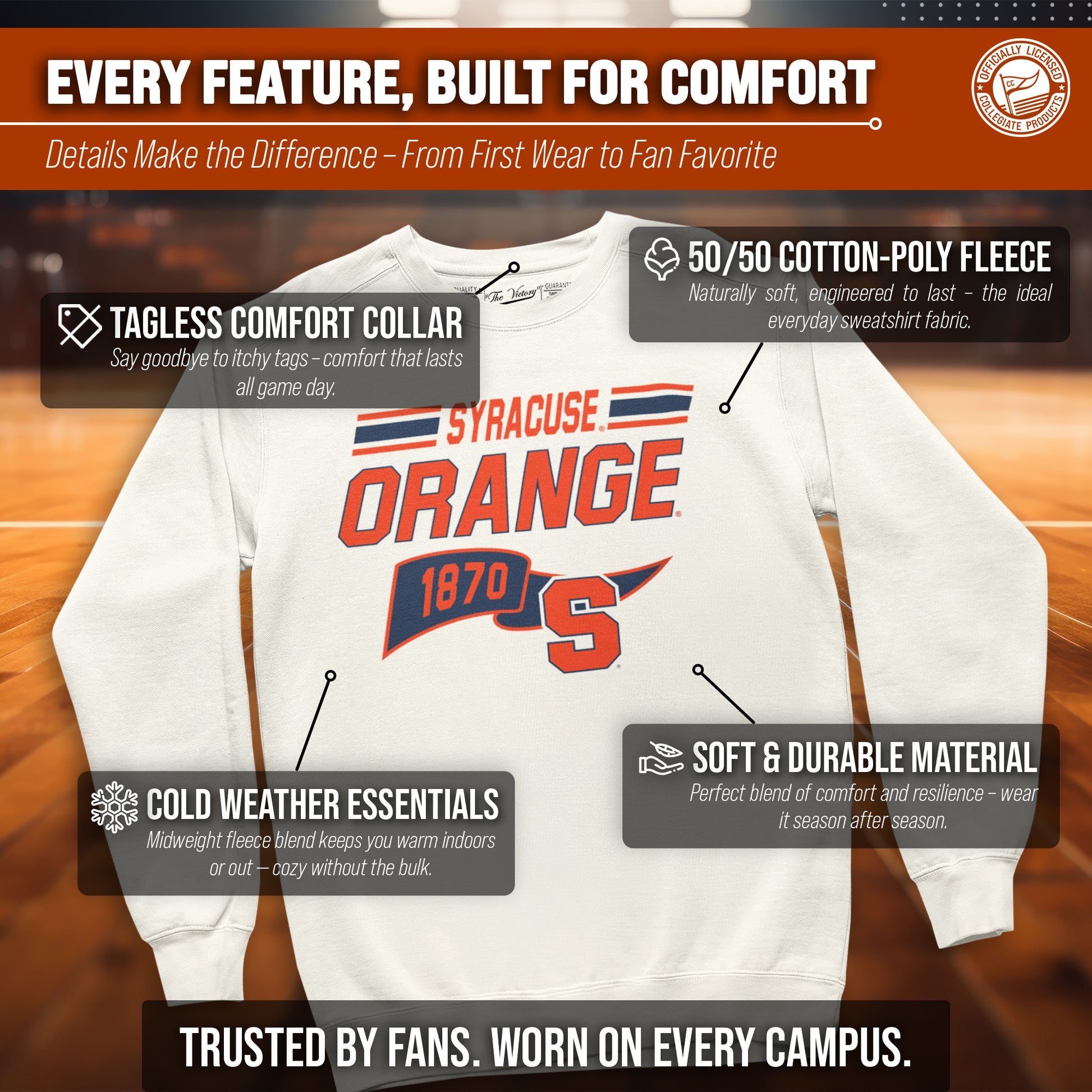 Syracuse Orange NCAA Adult Unisex Varsity Club Pennant Crewneck Fleece Sweatshirt - Off White