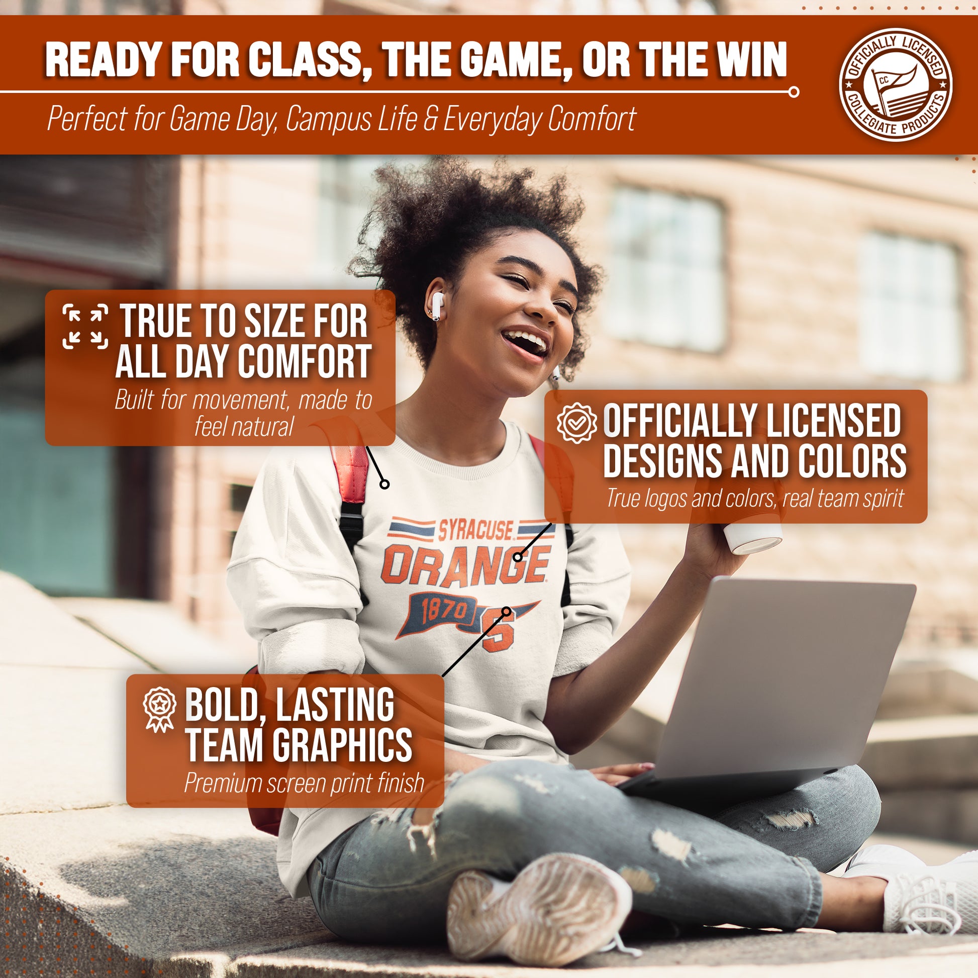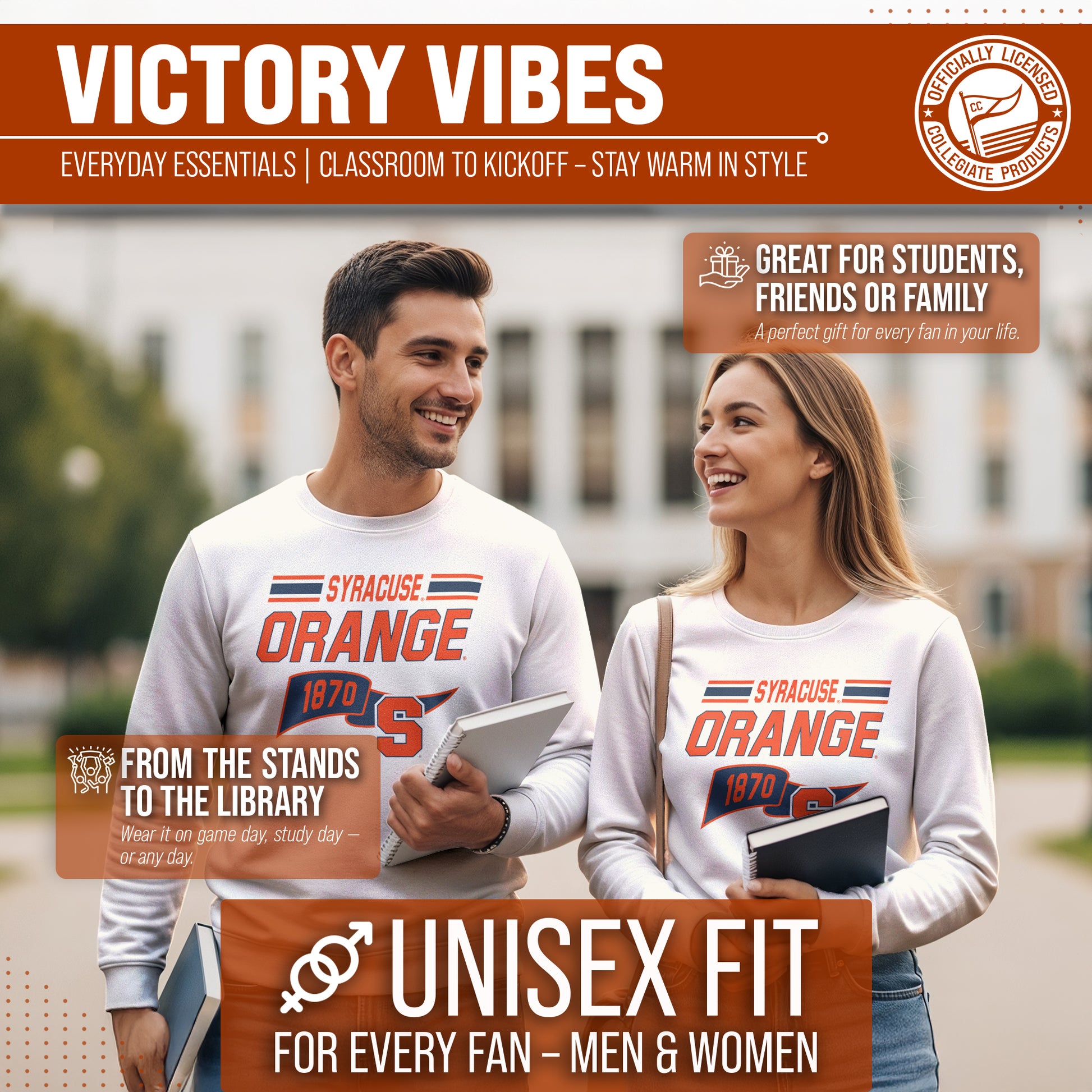 Show off your team spirit and stay warm in the NCAA Adult Unisex Varsity Club Pennant Syracuse Orange Crewneck Fleece Sweatshirt! This cozy sweatshirt is perfect for any Syracuse fan, with its vibrant colored pennant design. Made from a comfortable cotton poly fleece fabric, this Orange crewneck sweatshirt features long sleeves, ribbed wrists and waistband, and will keep you warm on chilly days!   But that's not all - you can wear this Syracuse sweatshirt game after game without worrying about wear and tear. It's the perfect addition to your college team apparel collection, whether you're cheering on your team at the stadium or just lounging at home. It is the number one Syracuse item you'll want to have on the next cold game day!   So why settle for a plain old sweatshirt when you can show off your love for Syracuse Orange in style? Get your NCAA Adult Unisex Varsity Club Pennant Crewneck Fleece Sweatshirt today for yourself or any Orange fan in your life and be confident know that you are rocking the most authentic and official gear!