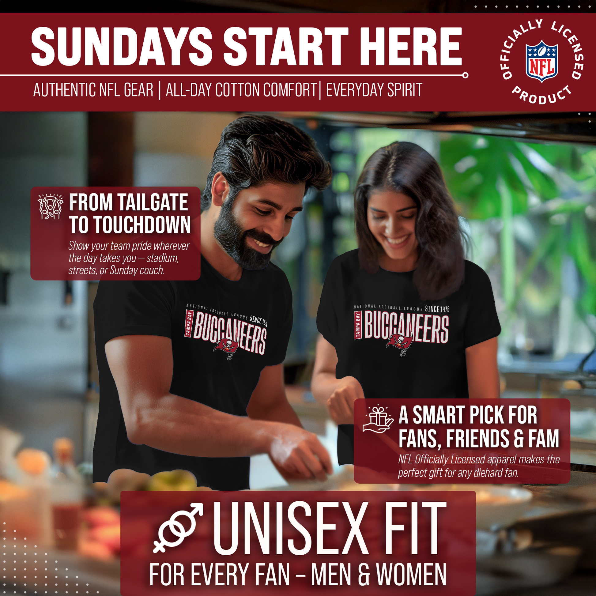 Show off your team pride in style with the officially licensed Team Fan Apparel Tampa Bay Buccaneers NFL Modern Endzone Tag-Less T-Shirt! Designed for both men and women, this versatile unisex tee is the ultimate staple for every football fan’s wardrobe. Whether you’re heading to the stadium, joining friends at a tailgate, or relaxing at home on game day, this Buccaneers shirt is built for all-day comfort and effortless style. Crafted from soft, breathable cotton, this shirt ensures a lightweight and comfortable fit that you’ll want to wear again and again. The tag-less neckline eliminates irritation, so you can cheer on the Tampa Bay Buccaneers distraction-free. With its modern endzone graphic design, bold team logo, and the year the Buccaneers were founded, this shirt highlights your loyalty and sets you apart as a true die-hard fan. Available in a wide range of sizes, this Tampa Bay Buccaneers NFL T-shirt is designed to deliver a flattering and comfortable fit for every fan. Pair it with jeans for a casual everyday look, or layer it with your favorite hoodie or jacket when temperatures drop. It’s the perfect way to represent the Buccaneers season after season, no matter where you’re watching the action unfold. Looking for the ultimate gift for a fellow football fan? This Modern Endzone T-shirt is a must-have piece of officially licensed Tampa Bay Buccaneers apparel. From birthdays to holidays—or just because—it’s an easy win for any Buccaneers supporter who wants to show their pride in comfort and style. Celebrate your passion for the game and your team history with the Tampa Bay Buccaneers NFL Modern Endzone Tag-Less T-Shirt. Comfortable, stylish, and packed with team spirit, this tee makes it clear who you’re cheering for every time you wear it. Don’t miss out—grab yours today and rep the Buccaneers with pride all season long!