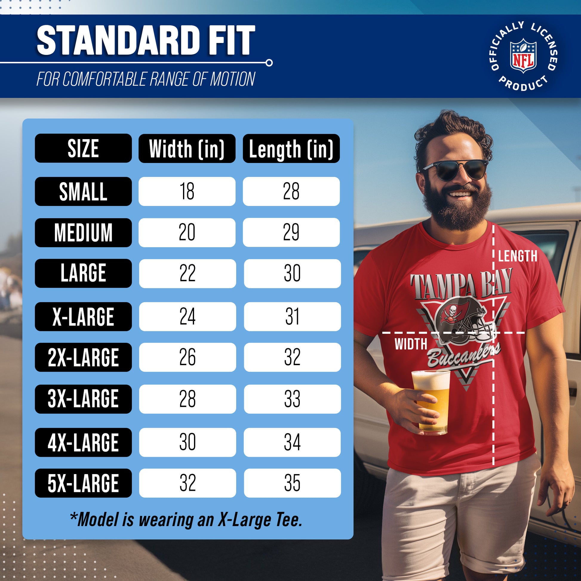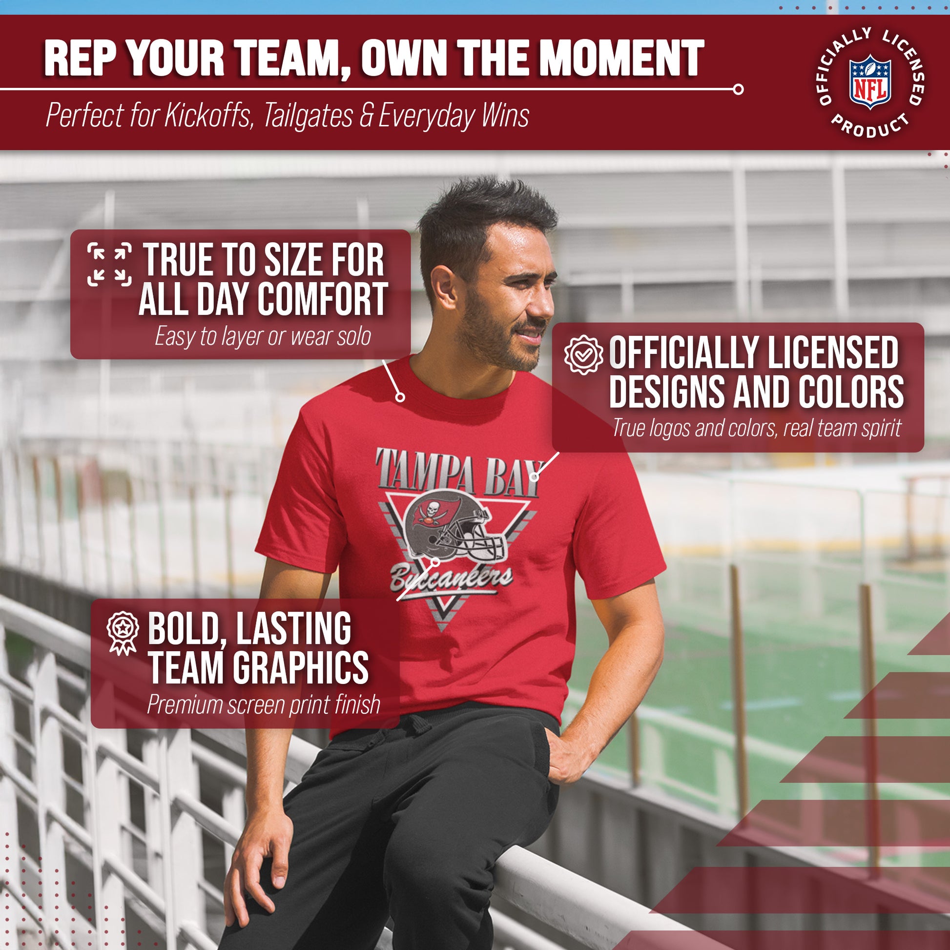 Show off Your Team Spirit with the Comfortable and Stylish Tampa Bay Buccaneers NFL Adult Retro Triangle T-Shirt!  Support your favorite football team in style and comfort with this officially licensed Buccaneers t-shirt. Made from a soft and breathable ring-spun cotton, this shirt is perfect for game day or everyday wear. The tag-less design eliminates any annoying tags that can cause discomfort, making it even more comfortable to wear.  Featuring a retro triangle design, this unisex t-shirt is suitable for both men and women. The short-sleeved style is perfect for warmer weather or layering under a jacket during colder months. Whether you're cheering on your team at the stadium or watching the game from home, this t-shirt is the ultimate fan apparel.  So go ahead and show off your Buccaneers team pride with the NFL Adult Retro Triangle T-Shirt - because nothing beats comfortable, stylish, and officially licensed fan gear!