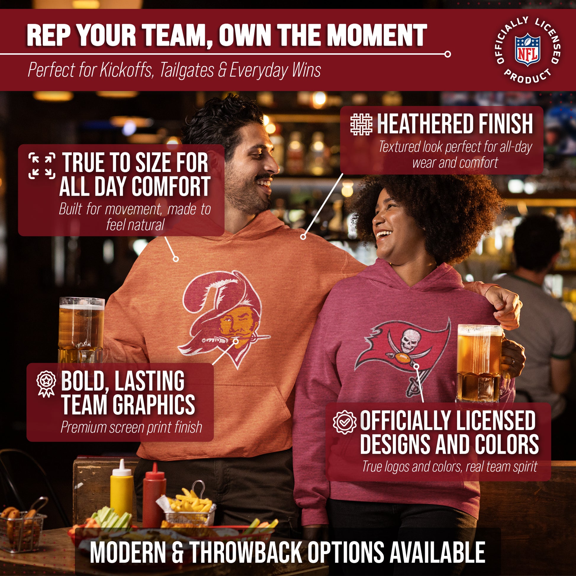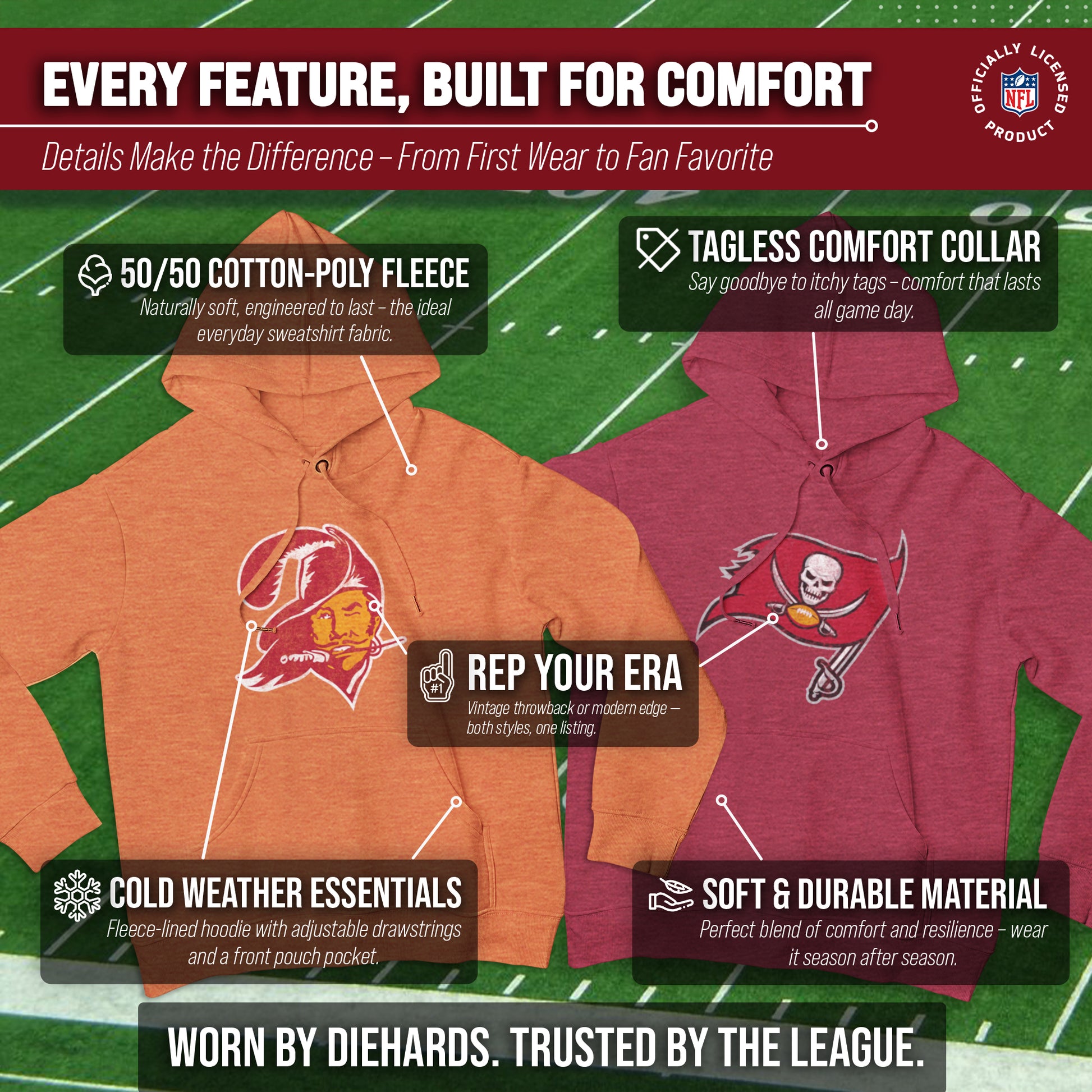 Get Ready to Show Your Team Spirit in the Most Comfortable Way Possible with Team Fan Apparel's Tampa Bay Buccaneers NFL Modern Throwback Hooded Sweatshirt!  Made with ultra-soft fleece material, this hooded sweatshirt is perfect for game days or just lounging around the house. With its unique vintage design and performance material, you can proudly represent your favorite team wherever you go.   Not only is it officially licensed by the NFL, but it also comes in adult unisex sizing so both men and women can rock their team pride. The modern throwback design adds a classic touch to your gameday attire, making you stand out from the crowd.  So why settle for a basic sweatshirt when you can show off your style and support your team at the same time? Grab your NFL Modern Throwback Hooded Sweatshirt from Team Fan Apparel today and get ready to cheer on your Buccaneers in ultimate comfort!