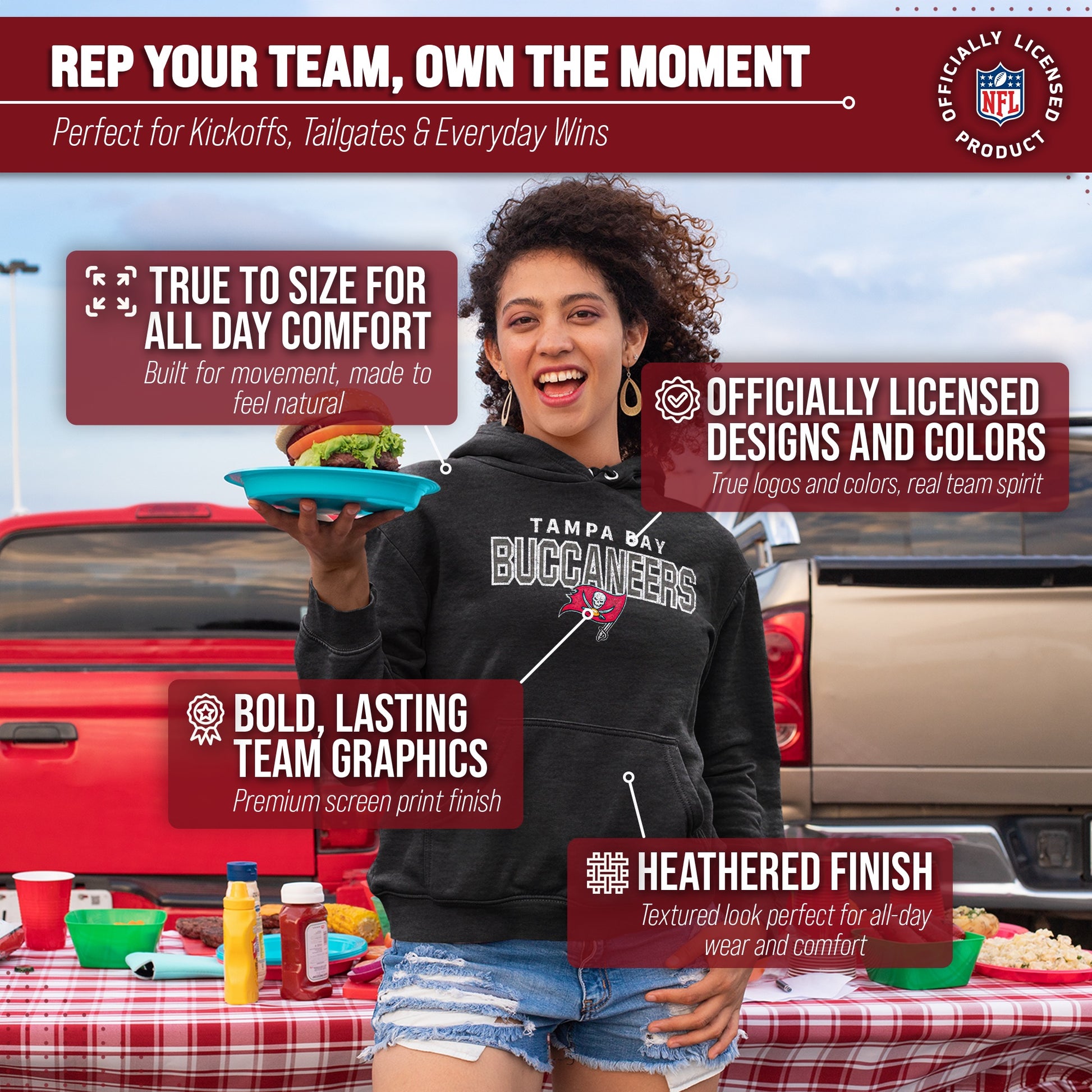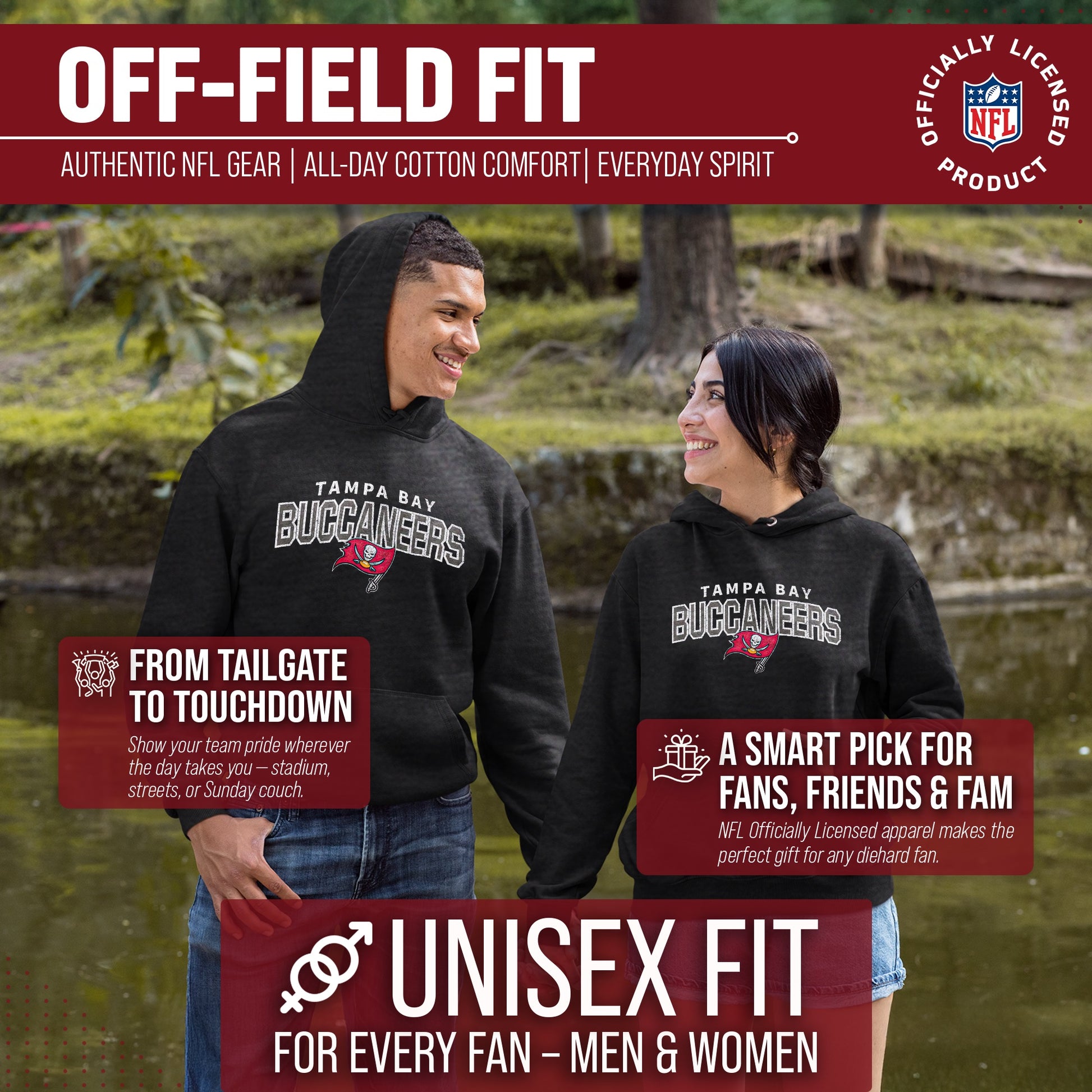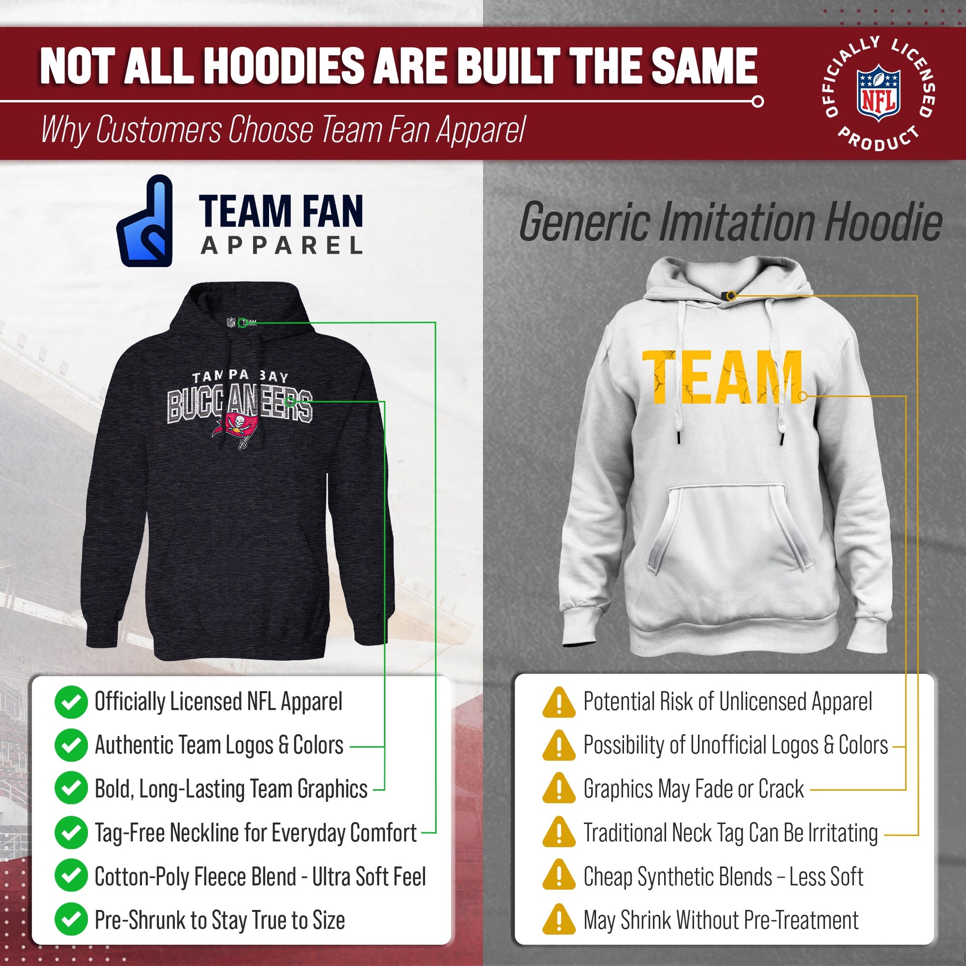 Get Ready to Show Your Team Spirit in the Most Comfortable Way Possible with Team Fan Apparel's Tampa Bay Buccaneers NFL Starting Fresh Hooded Sweatshirt!  Made with ultra-soft fleece material, this hooded sweatshirt is perfect for game days or just lounging around the house. With its unique vintage design and performance material, you can proudly represent your favorite team wherever you go.   Not only is it officially licensed by the NFL, but it also comes in adult unisex sizing so both men and women can rock their team pride. The Starting Fresh design adds a classic touch to your gameday attire, making you stand out from the crowd.  So why settle for a basic sweatshirt when you can show off your style and support your team at the same time? Grab your NFL Starting Fresh Hooded Sweatshirt from Team Fan Apparel today and get ready to cheer on your Buccaneers in ultimate comfort!