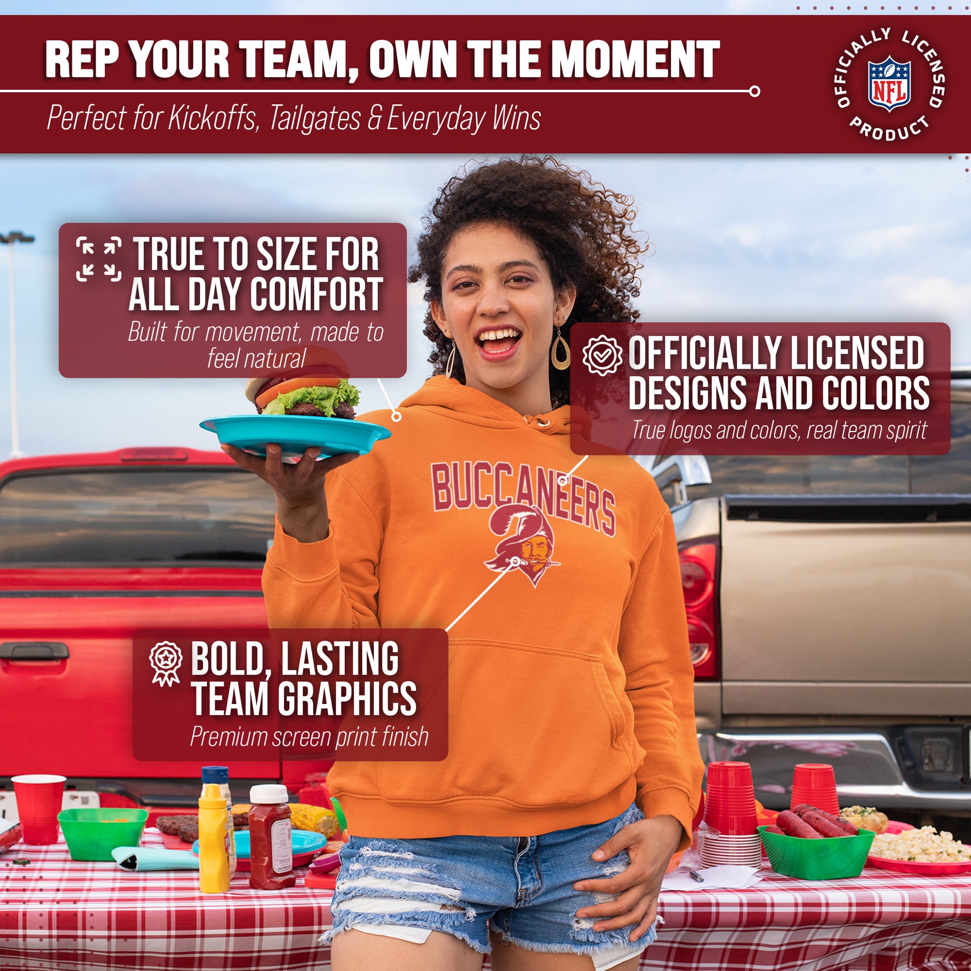 If you are looking for the ideal Buccaneers hoodie to wear with your sports outfit on game day, the Buccaneers Home Team Hood is perfect for you! This Buccaneers hoodie is great for showing team pride all year long. This is an essential piece of womens and mens football apparel for pro football fans. Our Tampa Bay Buccaneers team-colored hoodies are the perfect fan apparel for Tampa Bay Buccaneers tailgate outfits and sports games. This Tampa Bay Buccaneers hooded pullover with a pocket and drawstrings is ideal for warm or cold weather. The football pullover hoodie is made from a cotton poly blend fleece material with cotton face. Our Buccaneers hoodies also make the best Buccaneers gifts for men and women. If you are looking for the best Buccaneers gifts for women,  Buccaneers shirts, Buccaneers hoodies, or Buccaneers winter clothes, look no further than the Team Home Hood. Get yours today!