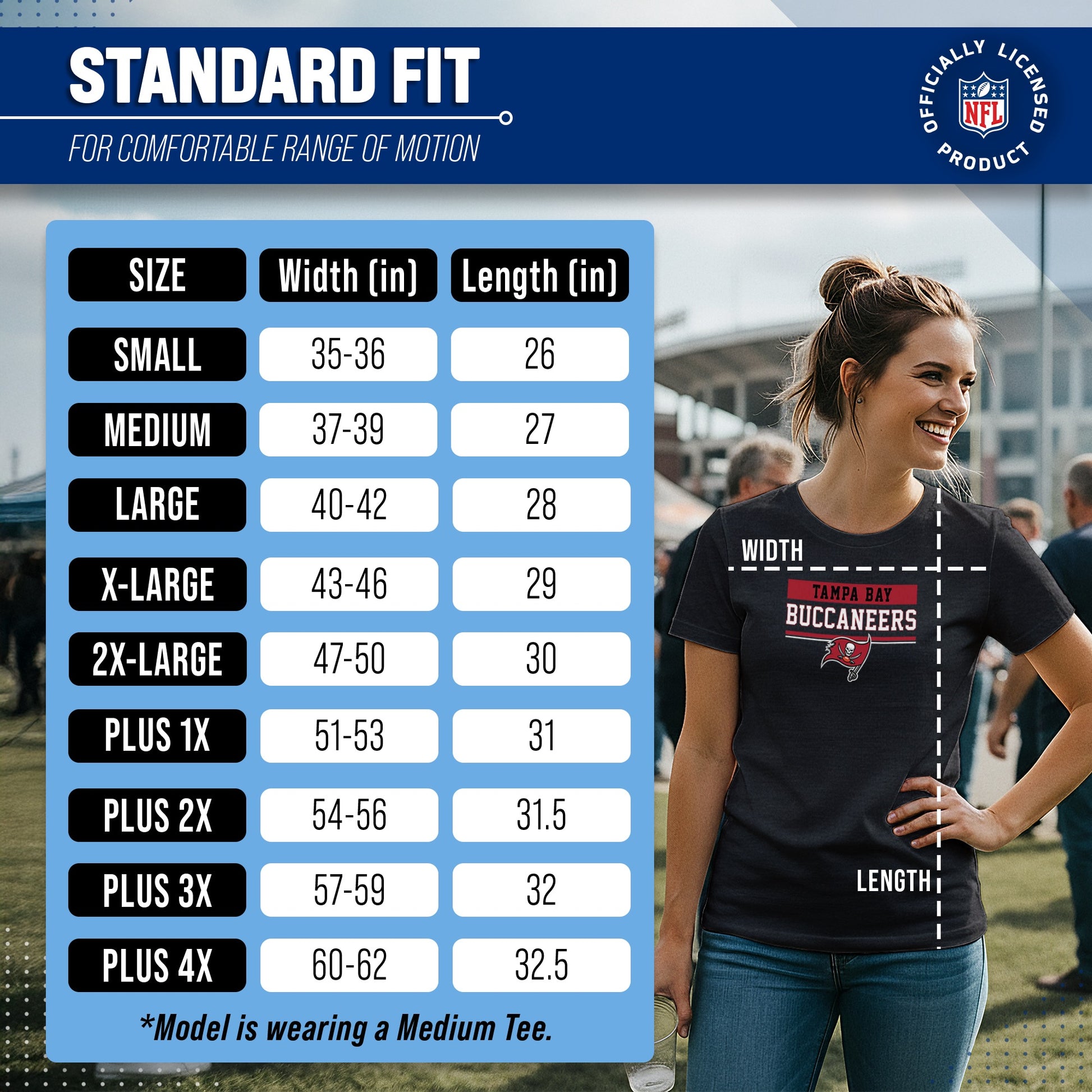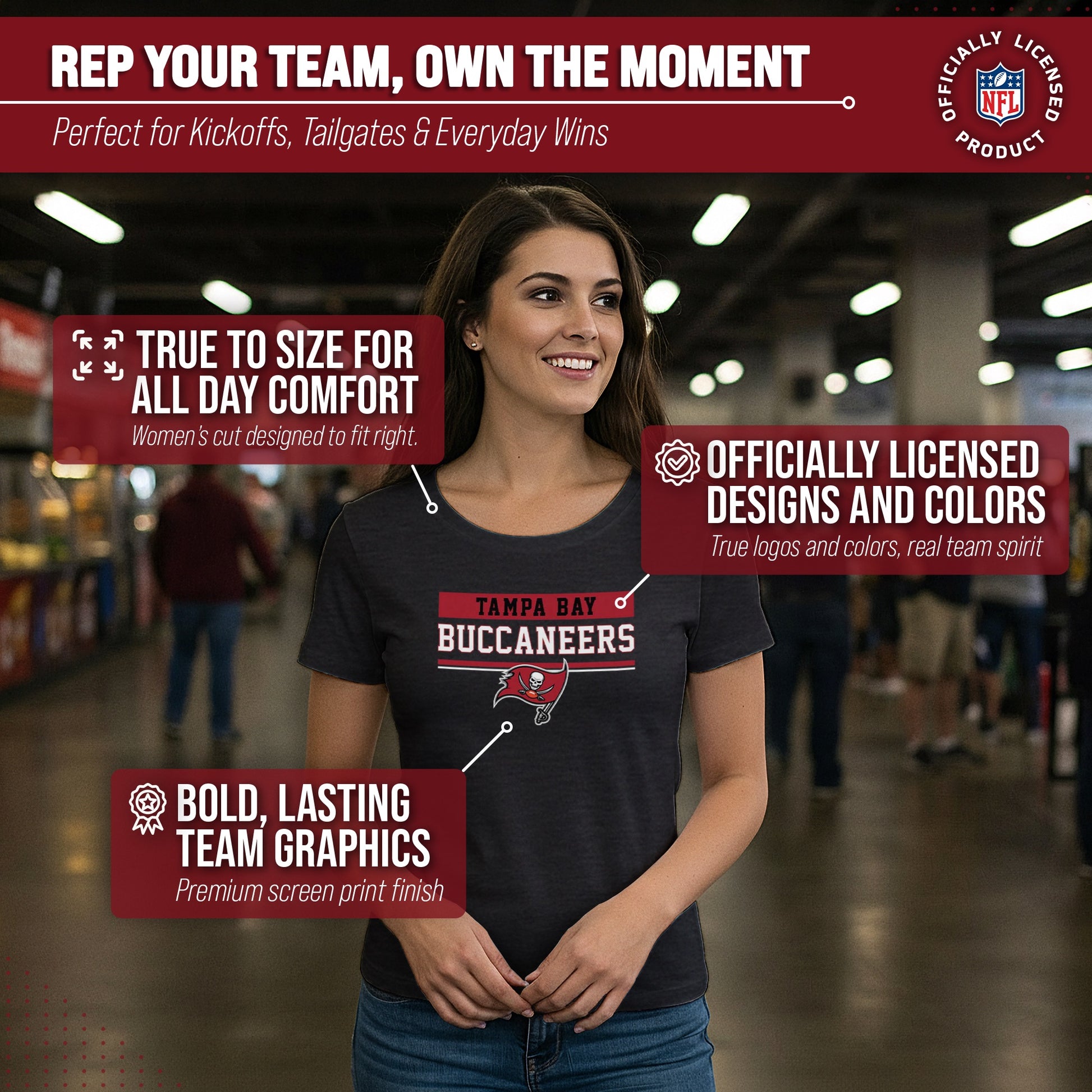 Our officially licensed womens Tampa Bay shirt is super comfortable, runs true to size, and is great for showing off your Tampa Bay Buccaneers pride.     The high-quality thermal printed logo will look fresh after years of wear, making it a great alternative to your womens Tampa Bay Buccaneers jersey. Our charcoal t-shirt has a relaxed yet contoured fit for a casual yet feminine look. The short sleeve shirt is perfect with shorts for tailgates in warmer months, or with jeans or leggings and a sweater during colder months. Available in plus sizes, our Tampa Bay shirts for women plus size or straight size will make anyone feel comfortable enough to show off their love for the Tampa Bay Buccaneers.          If you're looking to give team t shirts for women as a gifts, our womens charcoal tshirt is the Buccaneers shirt women will love. Officially licensed to ensure no counterfeit designs or colors, our Tampa Bay Buccaneers womens shirts are great for superfans. 100% ringspun and made from a blend of cotton and polyester, designed to keep you cool and comfortable all year long. The womens gameday football t shirt will definitely become one of your favorite tops.