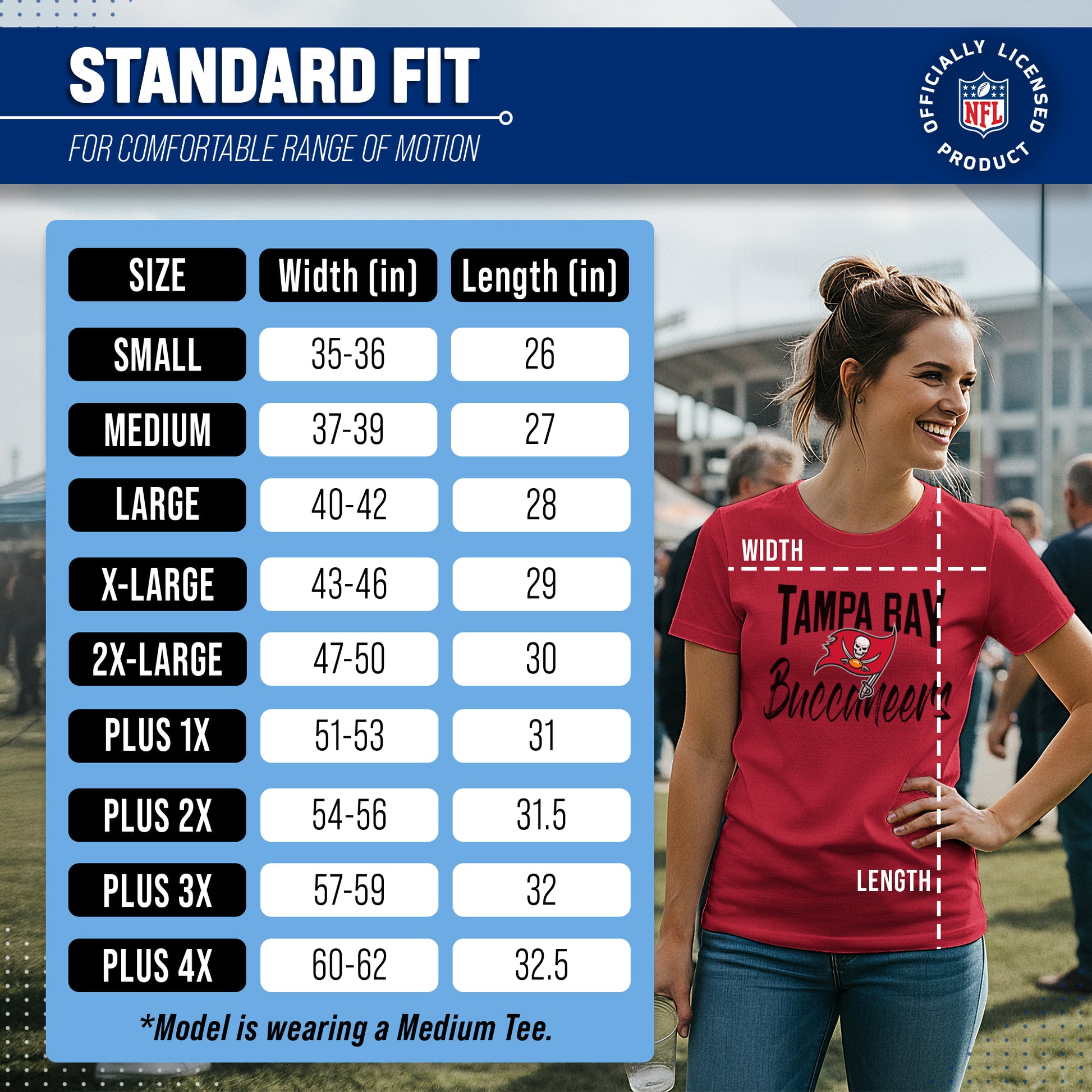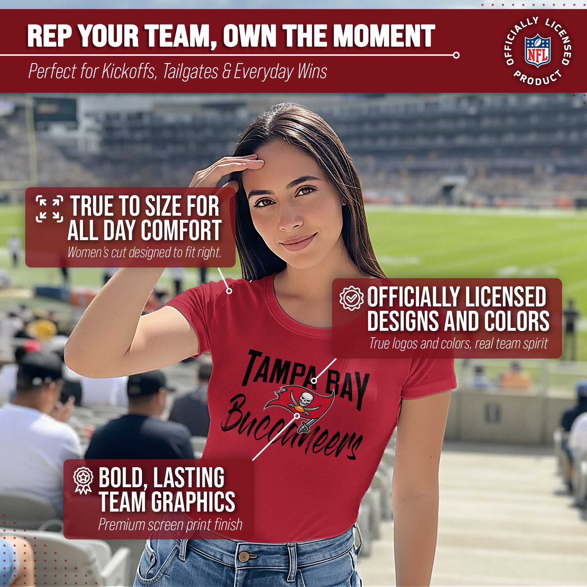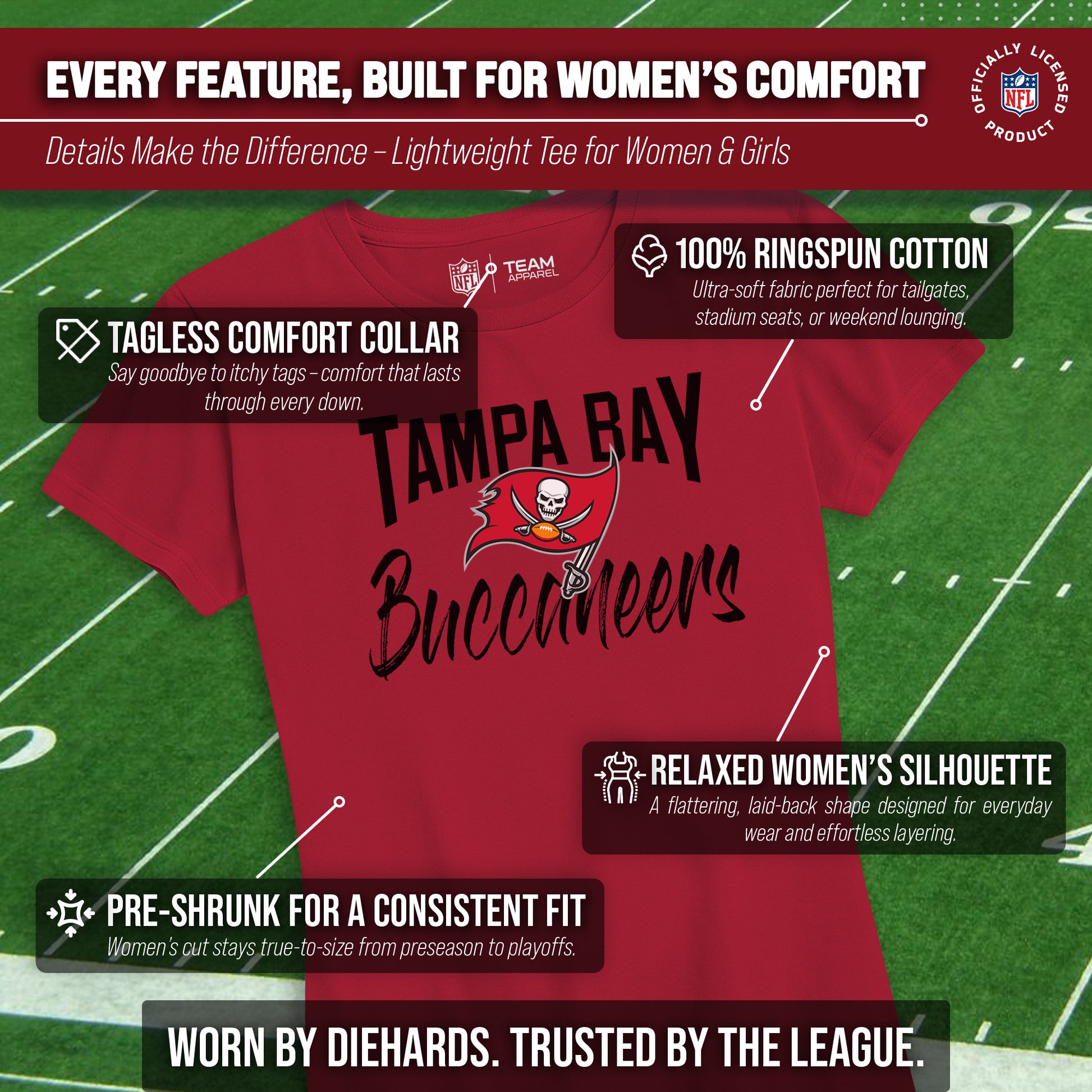 Our officially licensed womens Buccaneers shirt is super comfortable, runs true to size, and is great for showing off your Tampa Bay Buccaneers pride. The high-quality printed script hand painted looking design will look fresh wash after wash, making it a great alternative to your womens Tampa Bay Buccaneers jersey. Our womens football t-shirt has a relaxed yet contoured fit for a casual yet feminine look. The short sleeve shirt is perfect for tailgates in warmer months, or with jeans or leggings and a sweater during colder months. If you're looking to give team t shirts for women as a gift, our womens paintbrush tshirt is the Buccaneers shirt women will love. Officially licensed to ensure no counterfeit designs or colors, our Tampa Bay Buccaneers womens shirts are great for superfans. This t shirt will become a fan favorite for women on gameday.
