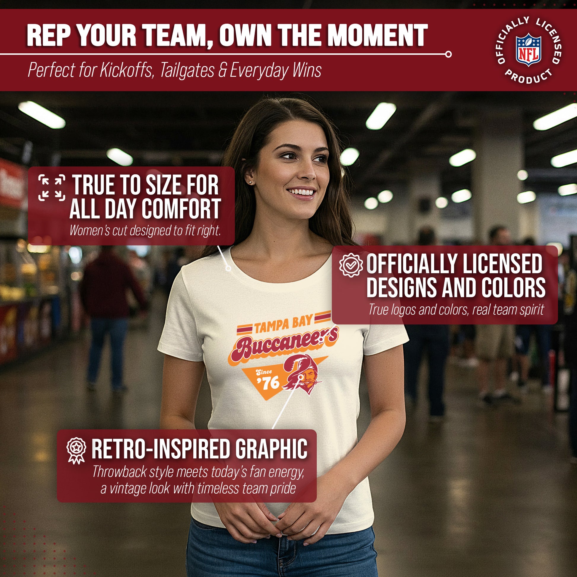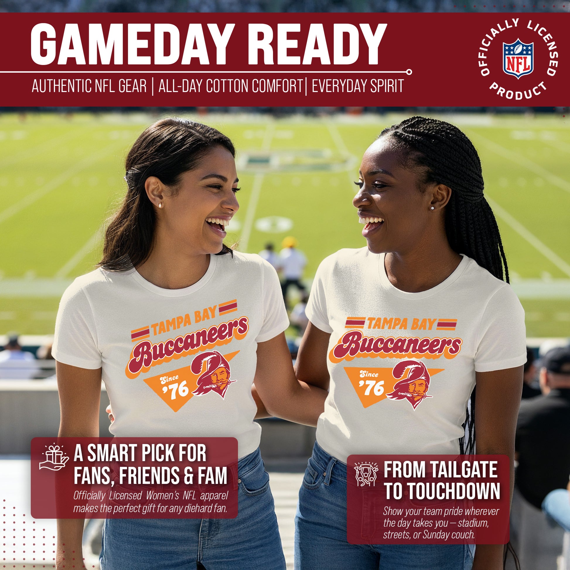 Tampa Bay Buccaneers NFL Womens Vintage Charm Tag-Less Soft T-Shirt - Birch