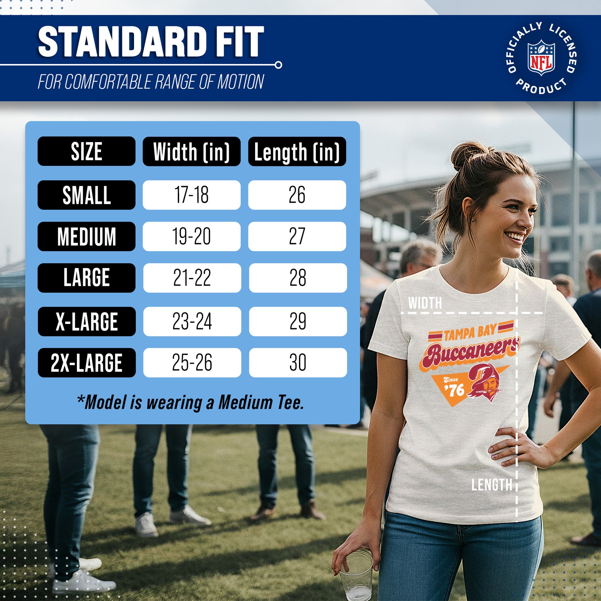 Calling all ladies! Get ready to rock game day with the Women's Team Fan Apparel Vintage Charm T-Shirt! This comfortable and stylish Tampa Bay Buccaneers womens tee is perfect for any female football fan, whether you're cheering on your favorite team at the stadium or watching from home. Made from a super soft cotton fabric , this shirt will keep you cool and comfortable all game long.  The pennant design, team name, and team logo adds a touch of retro flair, while the tag-less design ensures itch-free wear. Whether you're a die-hard fan or just love a good simple look, this shirt is perfect for showing off your team spirit. Available in a wide range of women's sizes, it's suitable for all shapes and sizes! The birch-colored garment will match well with everything in your closet!   So grab your girlfriends and get ready to cheer on your team in style with the Women's Team Fan Apparel Vintage Charm T-Shirt!
