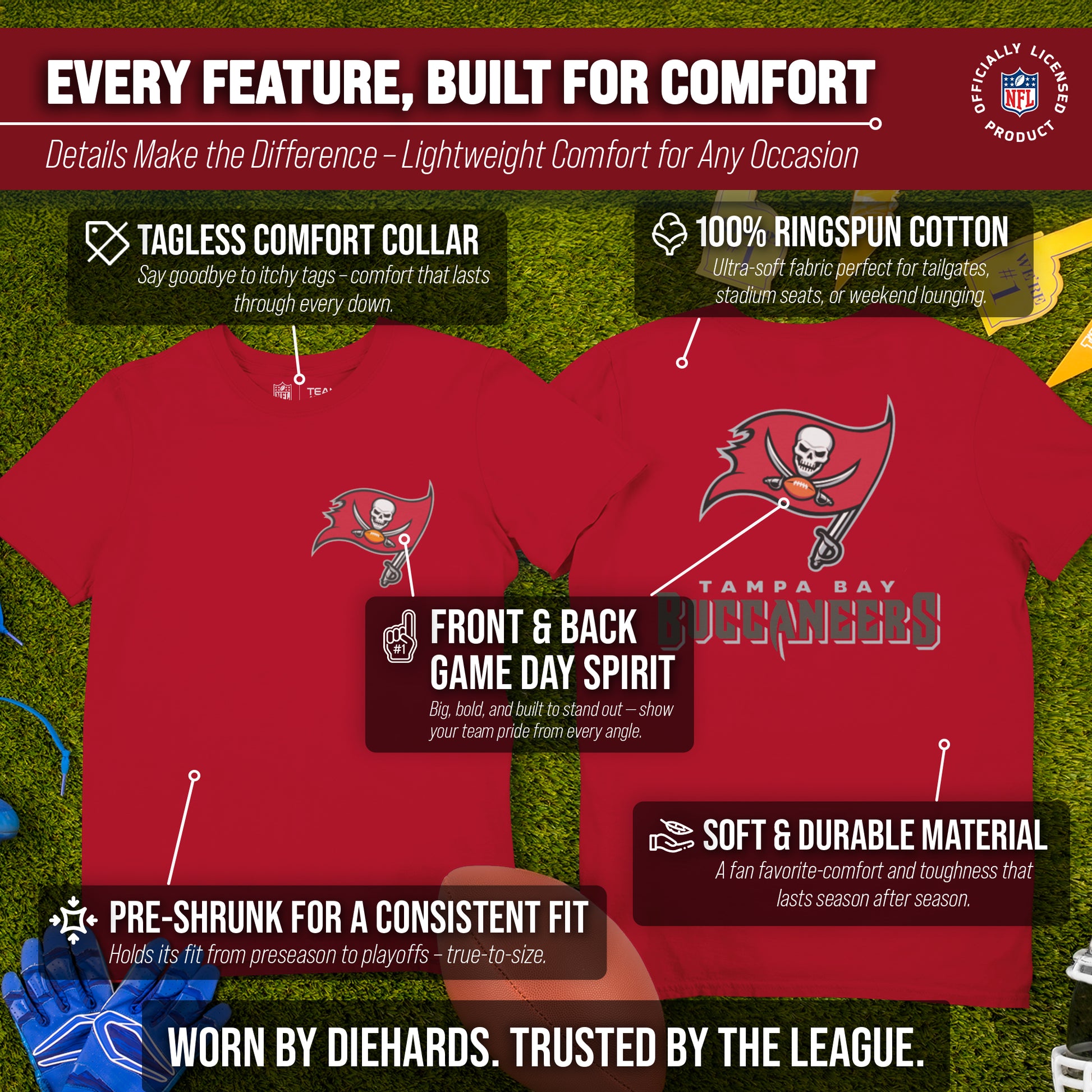 Represent your favorite team in the officially licensed, soft & comfortable Tampa Bay Buccaneers Final Countdown Tee! If you are looking for the best Tampa Bay Buccaneers t-shirt to wear on game day, look no further than our Tampa Bay Buccaneers shirt for men and women. The cotton & polyester blend ensures that this shirt is easy to wear all day. It features the official Tampa Bay Buccaneers graphics on the front & back of the shirt in bright colors, so there's no mistaking which team you are rooting for. The tagless t-shirt design ensures our t-shirt is comfortable for Tampa Bay Buccaneers fans with sensitive skin. This Tampa Bay Buccaneers unisex shirt for men and women is the perfect Buccaneers shirt for men and women and Buccaneers t-shirt for men and women. If you are looking for the best Buccaneers gifts for men, Tampa Bay Buccaneers gifts for women, or Tampa Bay Buccaneers gear, look no further than our cotton Tampa Bay Buccaneers t-shirt! Get yours today.
