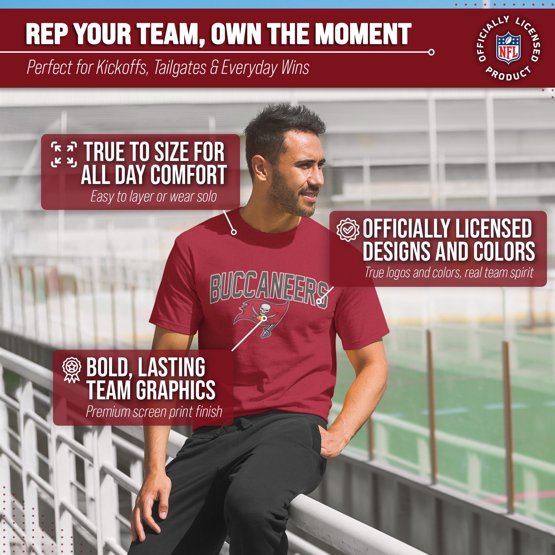 Looking for a comfortable, lightweight tee representing your favorite team? The Home Team Tee is for you! This Buccaneers t-shirt is made of cotton-poly fabric. It features the officially licensed Buccaneers wordmark in a trendy, thermally-printed design. It was made in the USA and is perfect for men or women. This tagless Buccaneers shirt is beyond comfortable and will keep you looking and feeling your best while you cheer on your favorite football team on game day. If you are looking for the best Tampa Bay Buccaneers gifts for men, Tampa Bay Buccaneers for women, pro football Tampa Bay Buccaneers shirts, football tshirts, mens and womens Buccaneers t-shirts, football merchandise Tampa Bay Buccaneers gear for men and women, lightweight & tagless Tampa Bay Buccaneers shirts, or Tampa Bay Buccaneers apparel, look no further than this Tampa Bay Buccaneers short sleeve fan shirt. It makes the perfect Father's Day or Christmas gift for Tampa Bay Buccaneers fans.