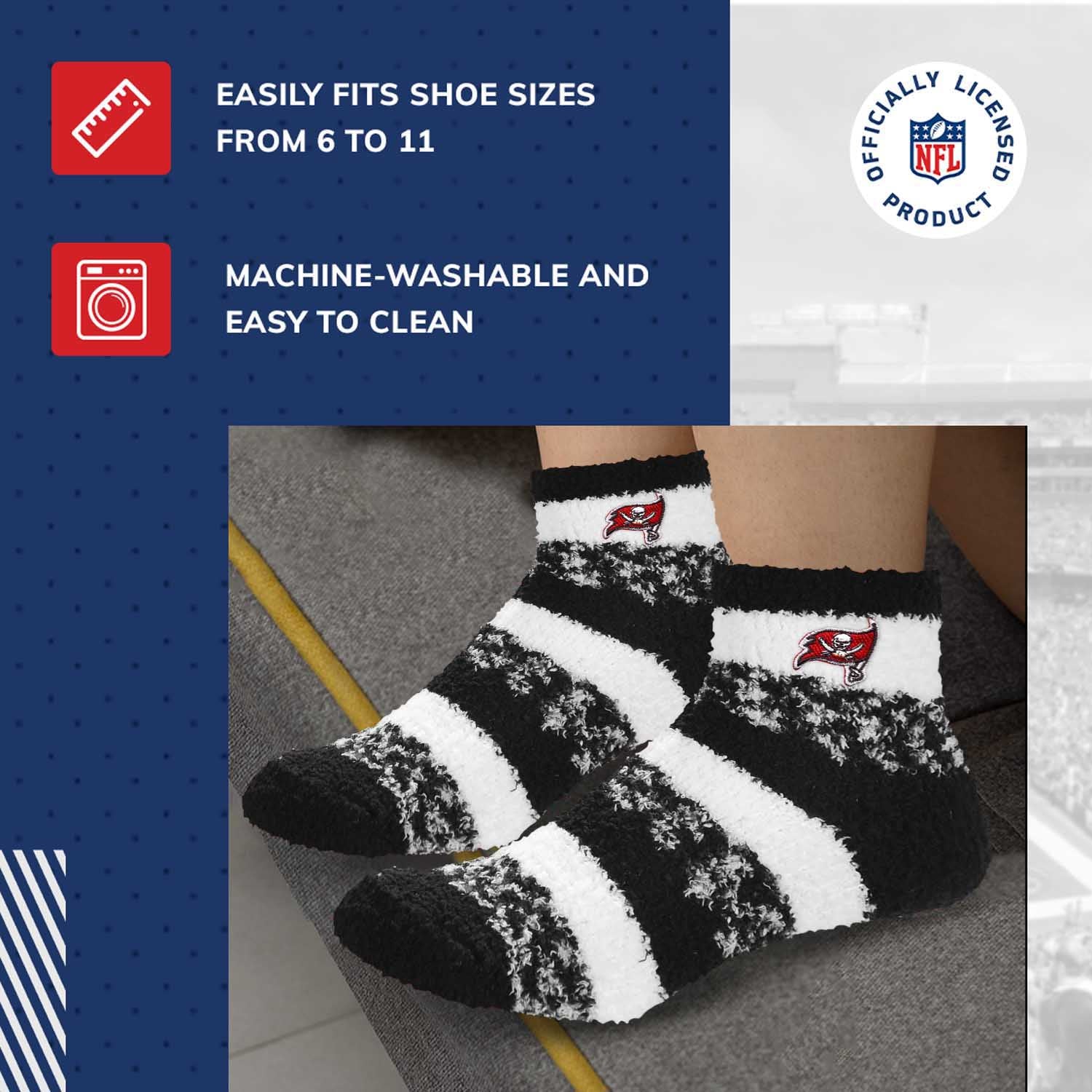 Experience the best Tampa Bay Buccaneers gifts women such as Tampa Bay Buccaneers socks women, cozy house socks, Buccaneers nfl socks, women cozy socks, and Tampa Bay Buccaneers apparel women. These cozy winter socks women are the perfect socks for women fluffy and go great with your Tampa Bay Buccaneers merchandise and Tampa Bay Buccaneers gifts. This cozy sock set is official Buccaneers football merchandise. They feel so super cozy plush and are designed as ladies fluffy socks and make the best mothers day gift, birthday gifts for her, Christmas gifts for her, birthday presents, and gifts for football fans. Enjoy women's sock crew. Fits sizes 6 7 8 9 10 11