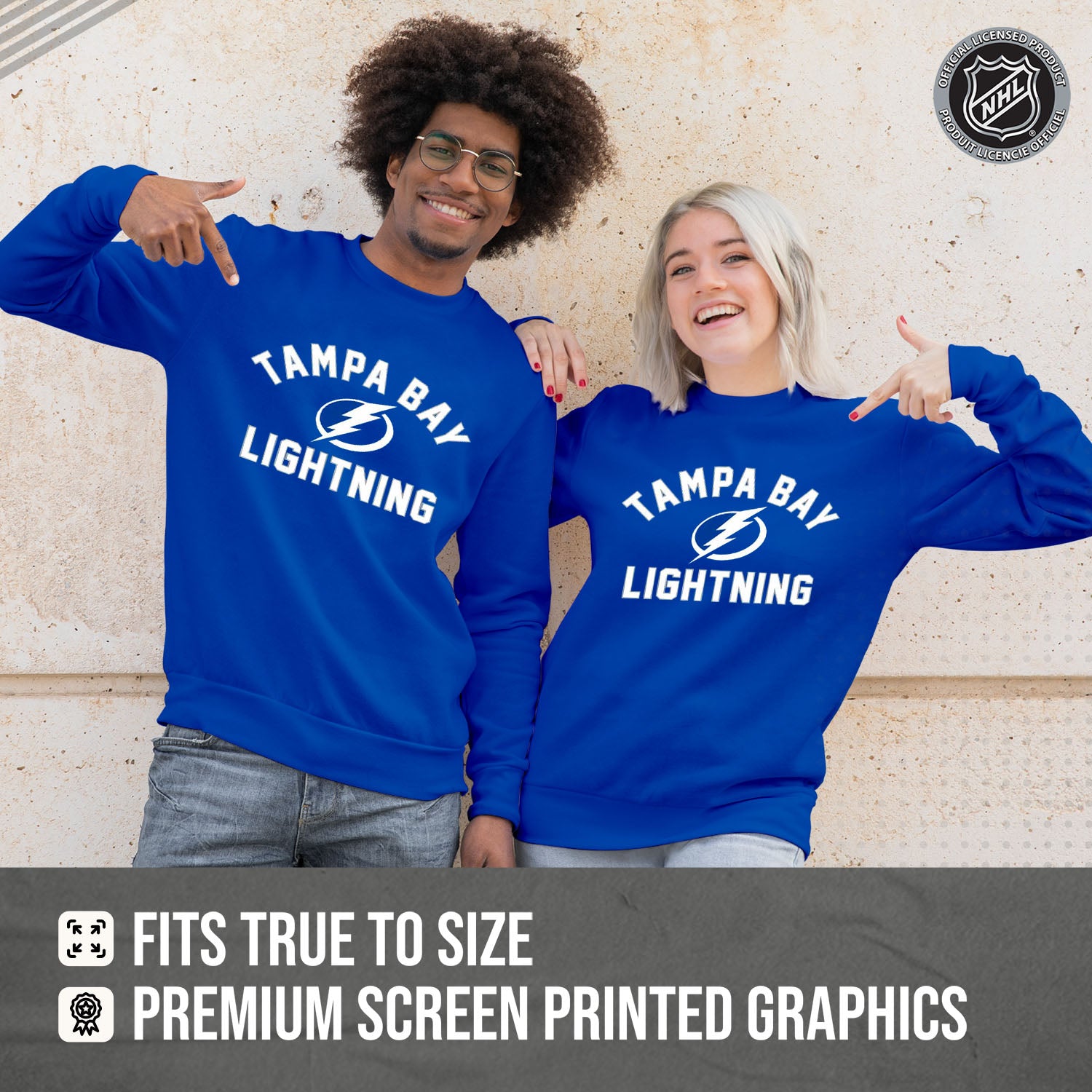 Score with Wright & Ditson, the ultimate destination for officially licensed NHL apparel for men and women. Design and printed in the USA, we use only the highest quality screen printing techniques to bring you the most comfortable, durable, and stylish clothing possible. Go ahead and show your team pride at the big game or any time! This premium hockey crewneck fits both male and female adults and comes in small, medium, large, XL, and XXL. So needless to say, it fits Tampa Bay Lightning fans of all types! Maybe you aren't a Lightning fan but you know someone who is? Don't worry! This high-quality hockey Gameday Crew is soft, lightweight, breathable and a GREAT gift for any Christmas gift, birthday or anniversary gift, Father's Day gift, Mother's day gift , you name it! So, if you want to stand out as the #1 fan at the next big game, you're going to want to be wearing one of these hockey sweatshirts!