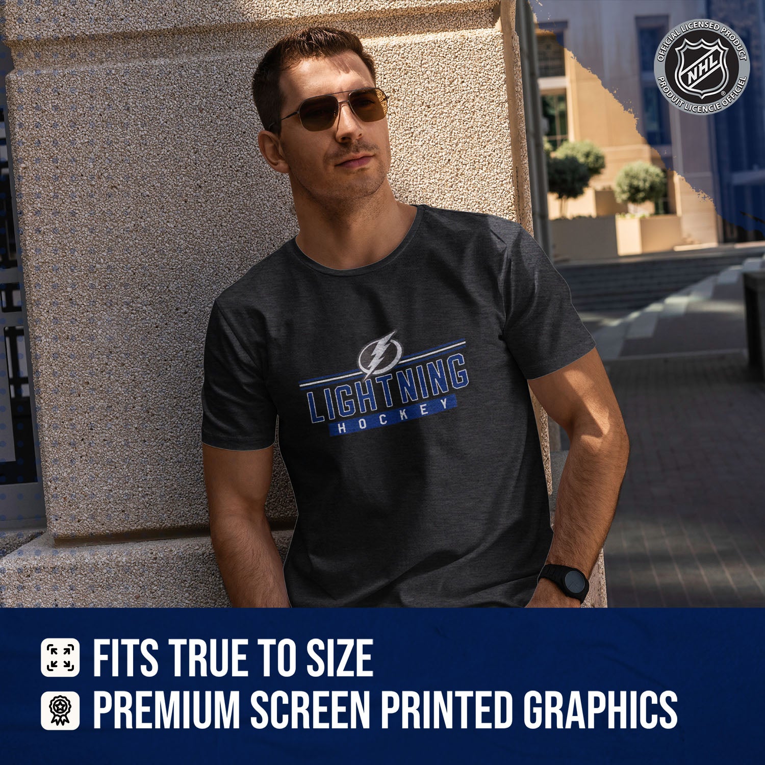 Score with Wright & Ditson, the ultimate destination for officially licensed NHL apparel for men and women. Design and printed in the USA, we use only the highest quality screen printing techniques to bring you the most comfortable, durable, and stylish clothing possible. Go ahead and show your team pride at the big game or any time! This premium t-shirt fits both male and female adults and comes in small, medium, large, XL, and XXL. So needless to say, it fits Tampa Bay Lightning fans of all types! Maybe you aren't a Lightning fan but you know someone who is? Don't worry! This high-quality t-shirt is soft, lightweight, breathable and a GREAT gift for any birthday, anniversary, Father's Day, Mother's day, Christmas, you name it! So, if you want to stand out as the #1 fan at the next big game or watch party, you're going to want to be wearing one of these hockey t-shirts.