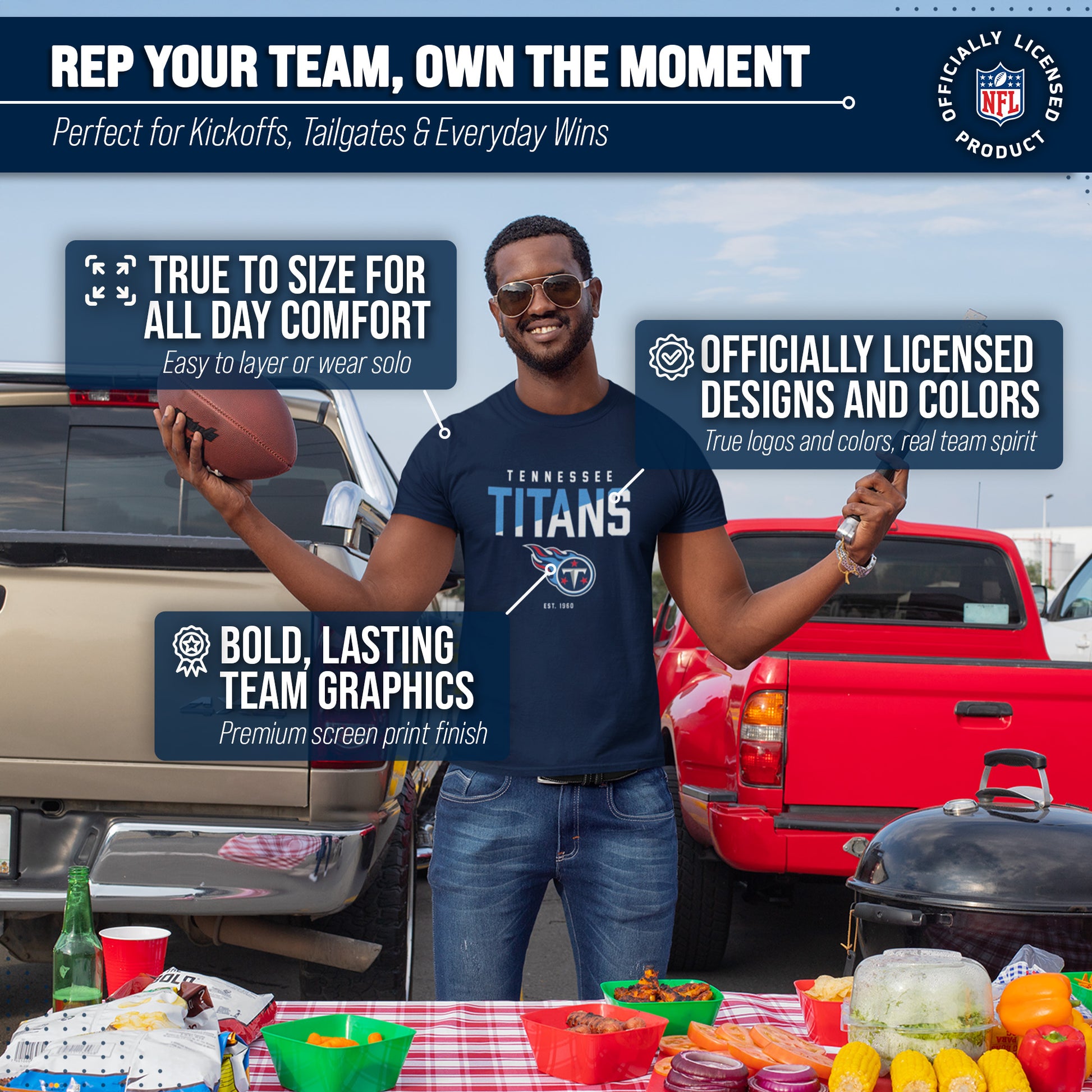 Score with Team Fan Apparel, the ultimate destination for officially licensed NFL apparel for men and women. We use only the highest quality screen printing techniques to bring you the most comfortable, durable, and stylish clothing possible. Go ahead and show your team pride at the big game or any time! This premium t-shirt fits both male and female adults and comes in small, medium, large, XL, and XXL. So needless to say, it fits Tennessee Titans fans of all types! Maybe you aren't a Titans fan but you know someone who is? Don't worry! This high-quality t-shirt is soft, lightweight, breathable and a GREAT gift for any birthday, anniversary, Father's Day, Mother's day, you name it! So, if you want to stand out as the #1 fan at the next big game or watch party, you're going to want to be wearing one of these hockey t-shirts.