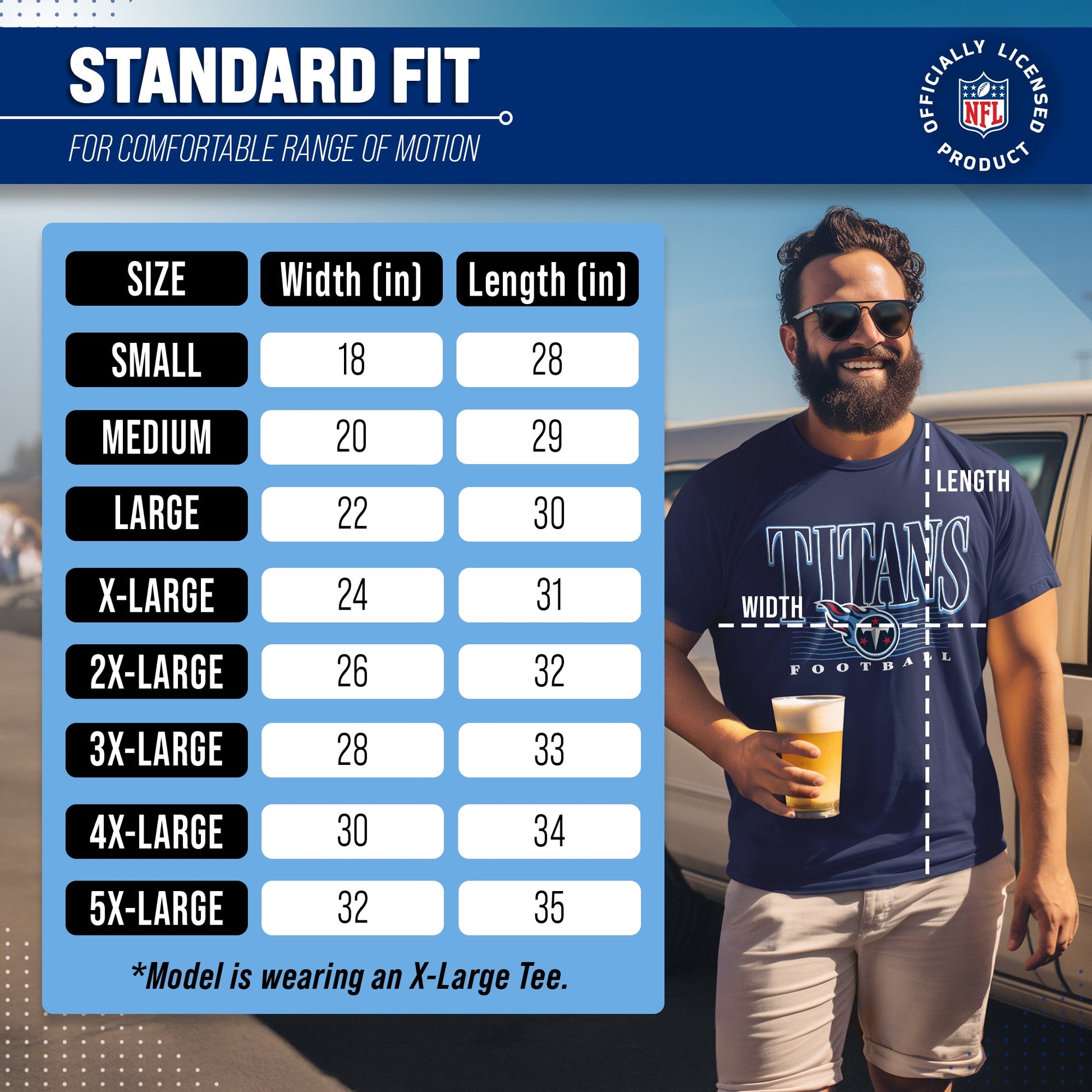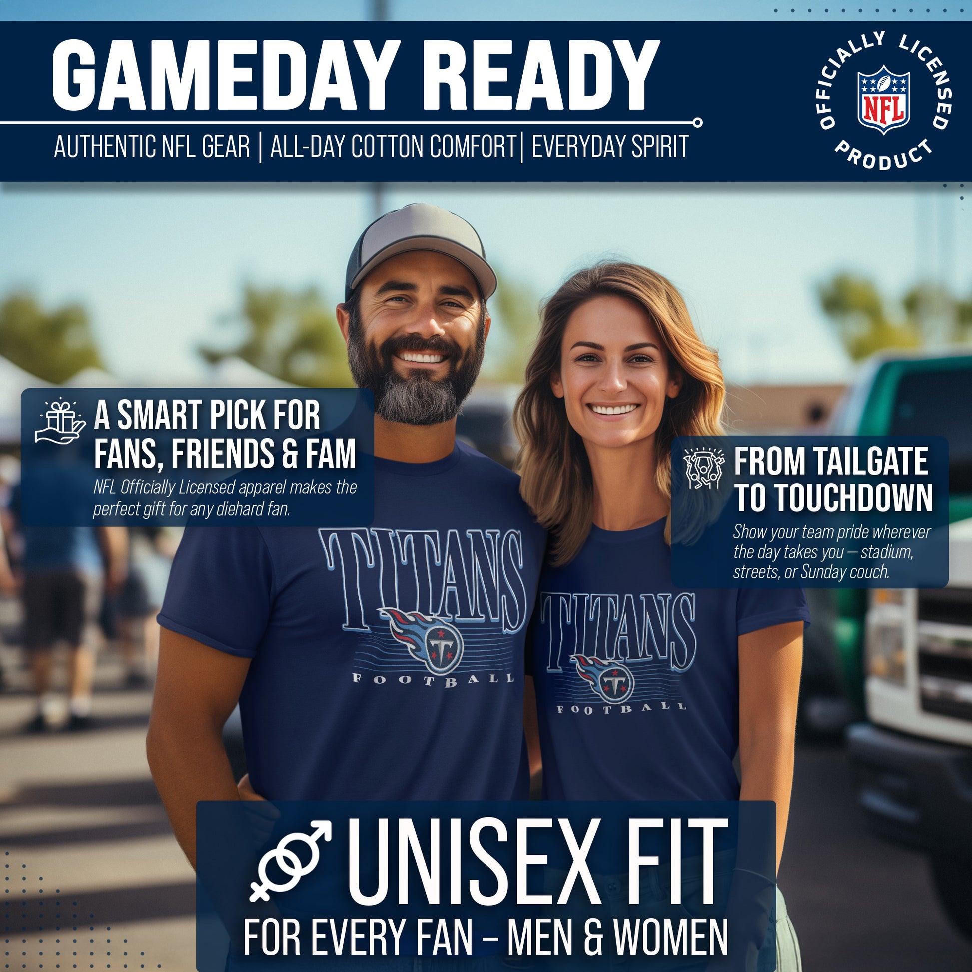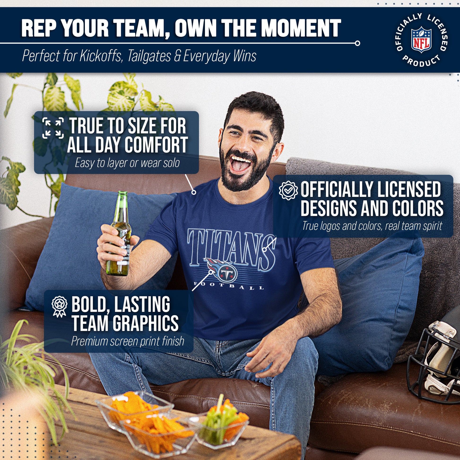 Show off your team spirit in style with our Team Fan Apparel Tennessee Titans NFL Overtime Blueprint Tag-Less T-Shirt! Made for both men and women, this unisex t-shirt is the perfect addition to any football fan's wardrobe. With its soft and comfortable cotton blend fabric, you'll love wearing it to games or just lounging at home. The tag-less design ensures maximum comfort without any annoying tags scratching at your neck. Featuring a colorful logo with outlined text of your favorite team, this shirt will make you stand out from the crowd and show off your die-hard fandom. It comes in multiple sizes, so you can choose the one that fits best & represents your team spirit. Whether you're cheering on your Titans at the stadium or watching from home, our NFL Overtime Blueprint Tag-Less T-Shirt is a must-have for all fans! So grab yours today and support your team in comfort and style. Go team!