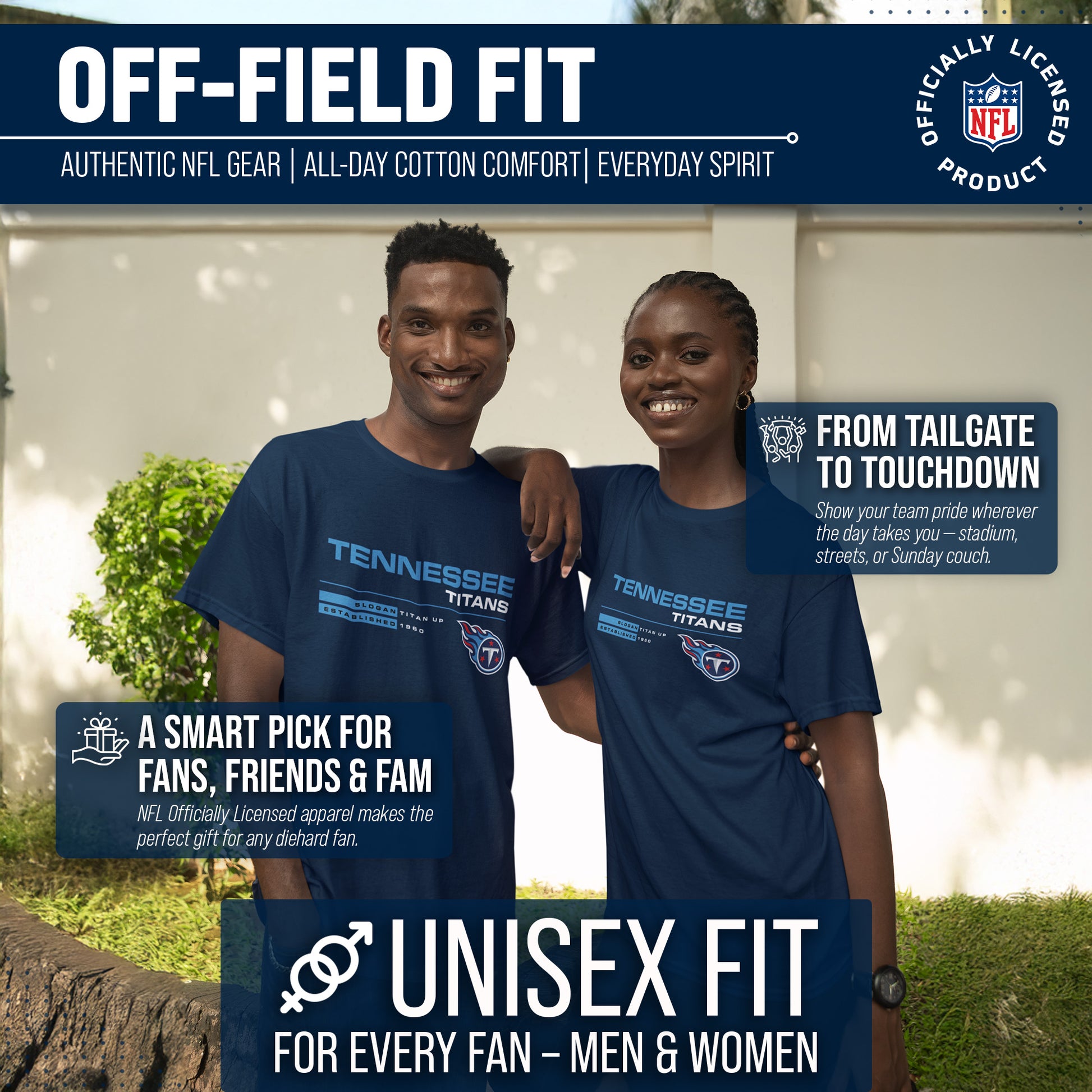 Score with Team Fan Apparel, the ultimate destination for officially licensed NFL apparel for men and women. We use only the highest-quality screen printing techniques to bring you the most comfortable, durable, and stylish clothing possible. Go ahead and show your team pride at the big game or any time! This premium t-shirt fits both male and female adults and comes in small, medium, large, XL, and XXL. So needless to say, it fits Tennessee Titans fans of all types! Maybe you aren't a Titans fan but you know someone who is? Don't worry! This high-quality t-shirt is soft, lightweight, breathable, and a GREAT gift for any birthday, anniversary, Father's Day, Mother's day, you name it! So, if you want to stand out as the #1 fan at the next big game or watch party, you're going to want to be wearing one of these football t-shirts.