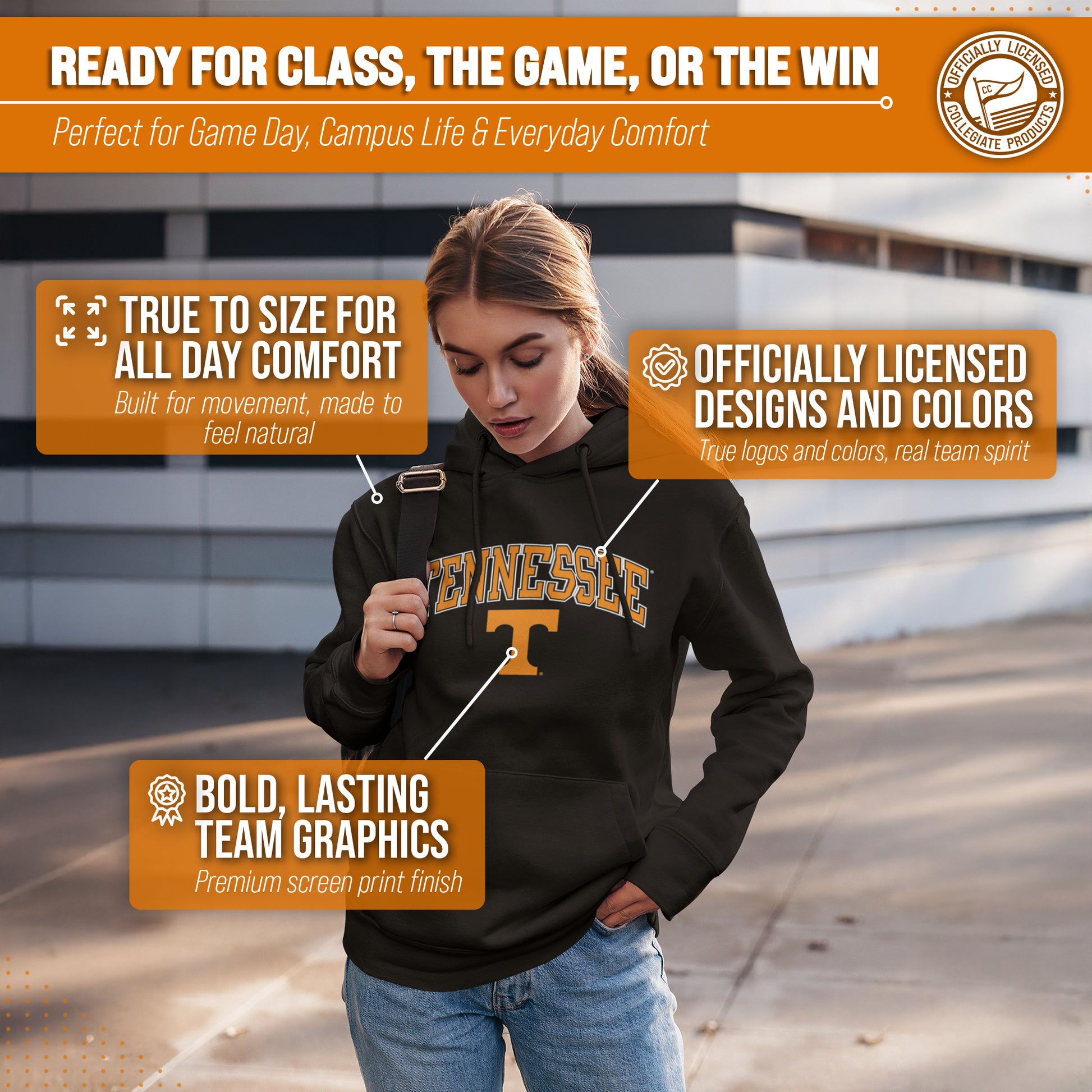 Score with Campus Colors, the ultimate destination for officially licensed college apparel for men and women. Design and printed in the USA, we use only the highest quality screen printing techniques to bring you the most comfortable, durable, and stylish clothing possible. Go ahead and show your team pride at the big game or any time! This premium-quality Gameday hoodie is super comfy, fits both male and female adults, and comes in small, medium, large, XL, and XXL. So needless to say, it fits Tennessee Volunteers fans of all types! Maybe you aren't a Tennessee fan but you know someone who is? Don't worry! This high-quality sweatshirt is soft, lightweight, breathable and a GREAT gift for any birthday, anniversary, Father's Day, Mother's day, you name it! So, if you want to stand out as the #1 Volunteers fan at the next big tailgate party, homecoming parade, or watch party, you're going to want to be wearing one of these Gameday sweatshirts.