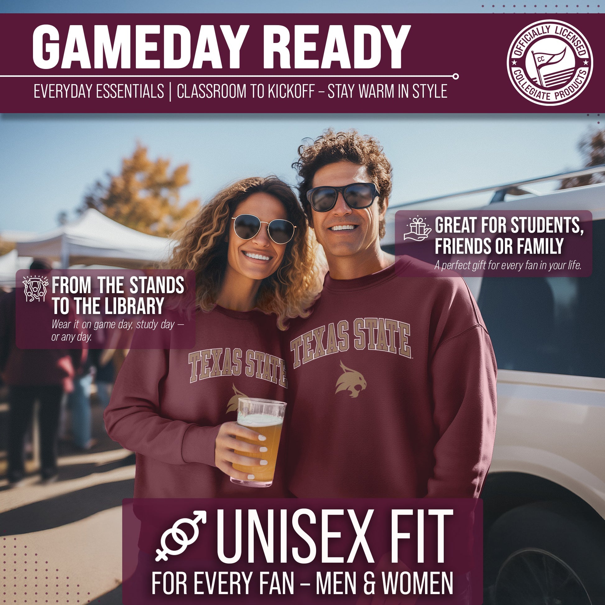 Texas State Bobcats Adult Arch & Logo Soft Style Gameday Crewneck Sweatshirt - Maroon