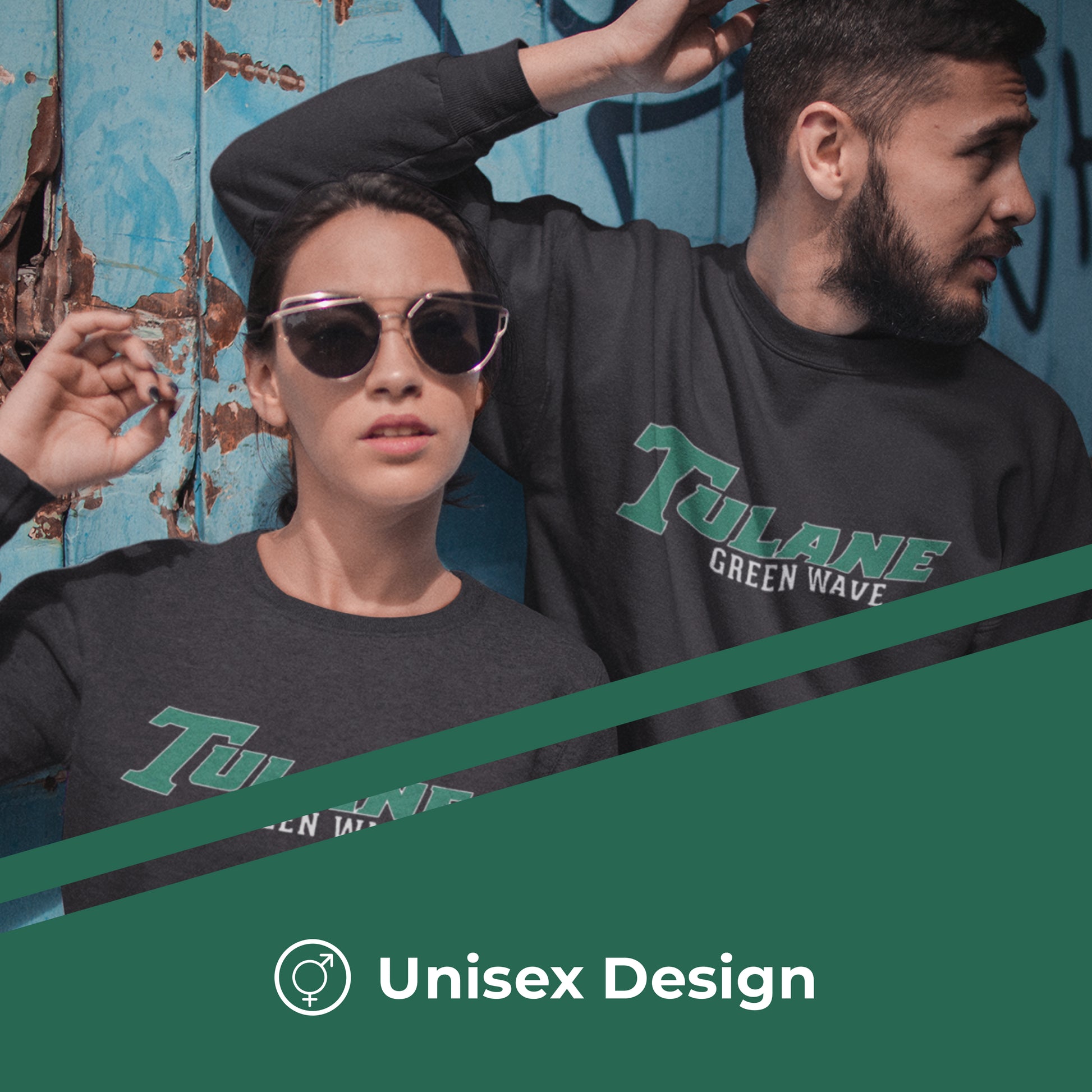 Our Charcoal Gameday Crewneck Sweatshirt is a college crewneck sweatshirt with a warm and toasty 9 oz fleece lining. It's the very best of Tulane Green Wave apparel, plain and simple. Gear up for your school's cold weather football or hockey game with confidence. Or, for women, bring it with you to basketball games and tie it around your leggings in case the arena is a little chilly. Our college crew neck sweatshirts for men and women are super comfortable, run true to size, and are great for showing your school pride all year long. Plus, the unisex fit is ideal for both men and women and works as an oversized sweatshirt for kids. College crewnecks for men and women feature your school's screen-printed university wordmark will stay crisp and clear, wear after wear. All colors and fonts are officially licensed and are of the highest of quality, it even comes with an officially licensed tag. Features: ribbed cuffs and waistband. This college sweatshirts crew in particular is perfect for tailgates, games, and showing off your school spirit. Gameday crewneck Tulane Green Wave sweatshirts make a great birthday, Christmas (or any other holiday), or graduation gift for any college student, upcoming high school or college graduate, alumni, or college sports fan. Gameday charcoal crewneck is essential collegiate apparel for protecting yourself and your loved ones from the elements. The fleece material will keep you warm through the colder months, and the no-zip design allows you to pullover and feel embraced like a big oversized blanket. The Tulane Green Wave charcoal crew necks are pre-shrunk and are made from a dual blend of 50% cotton and 50% polyester that is ideal for that tailgate or game day when the temperature drops. Pair with your other favorite Tulane game day apparel! Say goodbye to cheap sweatshirts. Our charcoal college sweatshirts for women and men help you gear up and get ready to cheer your team to victory.
