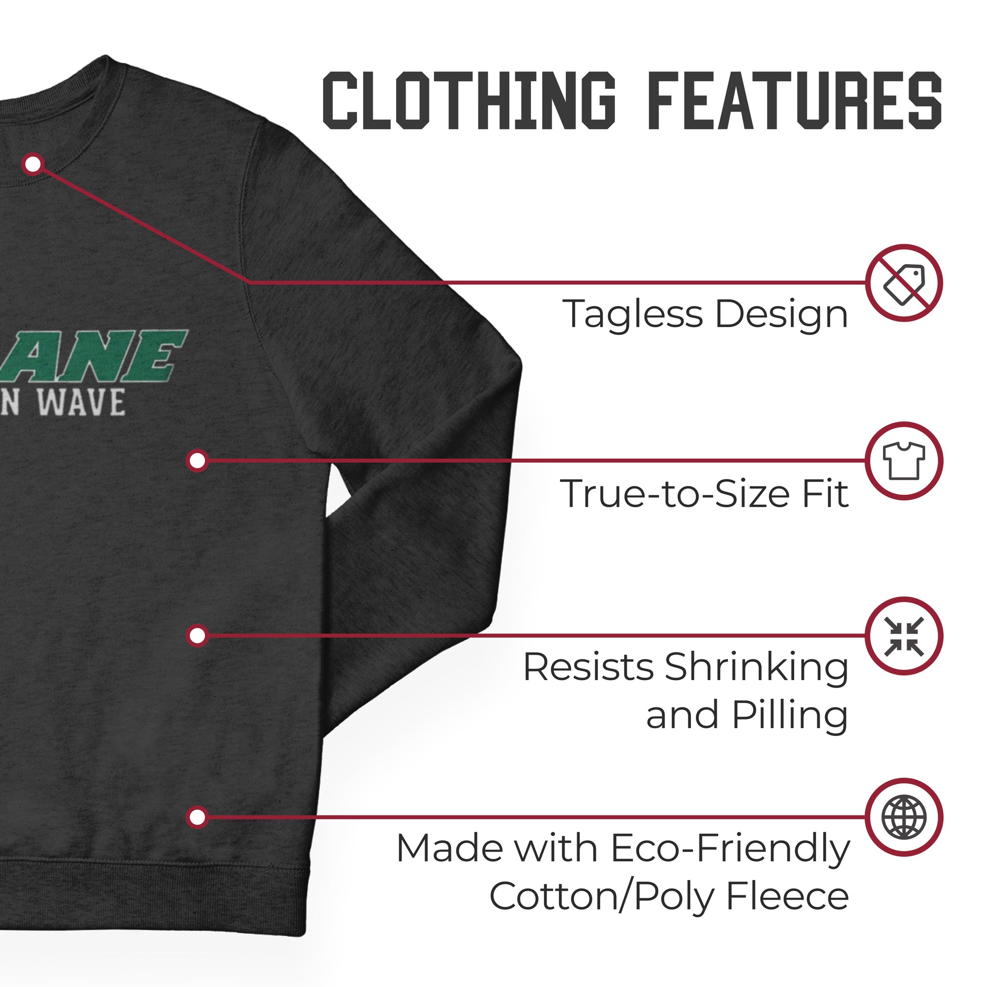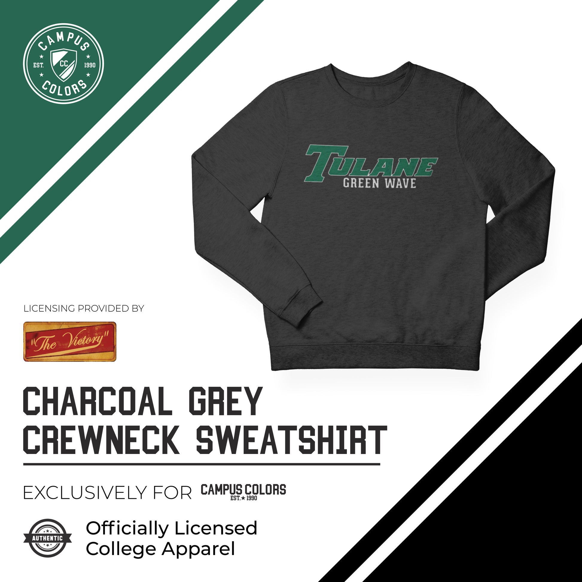 Tulane Green Wave NCAA Adult Charcoal Crewneck Fleece Sweatshirt - Charcoal