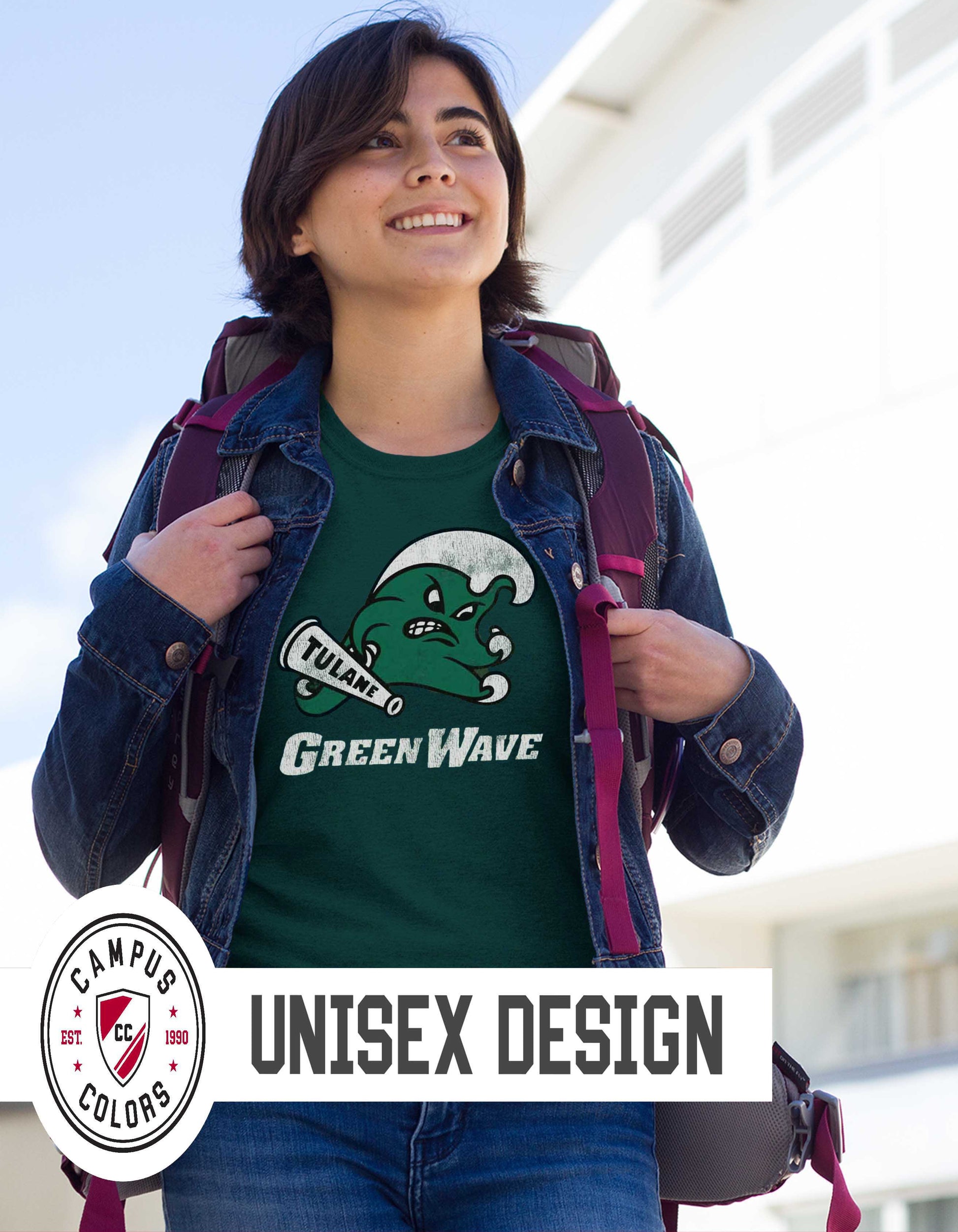 Support your Green Wave through another successful season while sporting this must-have shirt! Your dedication will be on full display when you wear the Tulane Green Wave NCAA Adult MVP Heathered Logo T-Shirt! This heathered t-shirt features official team colors as well as your favorite team name and logo! The screen printed graphics are displayed in a vintage style that gives you the look of a loyal and seasoned fan. Made from a dual blend of ringspun cotton and polyester, this super soft shirt will have you staying comfortable all day long! Wear it at the next tailgate or big game, or even while you watch your team win from home! Perfect for yourself or that next birthday, Christmas, or graduation gift you need to find! Never let your Green Wave fandom be questioned again, get this shirt today!
