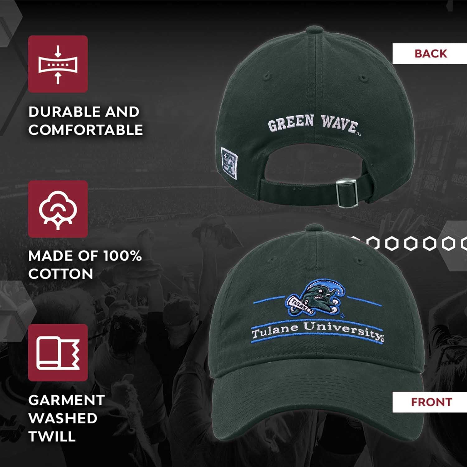 Looking for a way to support your team? Try this Tulane Green Wave game bar hat! These Tulane Green Wave caps are made from 100% garment-washed cotton twill. This Tulane hat also features a relaxed and unstructured design, making it a perfect Tulane Green Wave fitted Green Wave hat. It boldly displays the Tulane Green Wave embroidered logo so you can represent the Tulane. In addition, the Tulane Green Wave logo with the school wordmark is on the front of the hat in a bar design. The team wordmark is on the back of the Green Wave baseball cap. This gameday hat has a metal closure to ensure an adjustable size. Wear these caps for women and men along with your favorite Tulane clothes, clothing & apparel. These ball caps for men and women are the perfect Tulane Green Wave gifts for men. Buy one for yourself, your dad, or any fan. Whether tailgating at Tulane football games or cheering from home, show your team pride by wearing your Tulane gear with your Tulane cap.