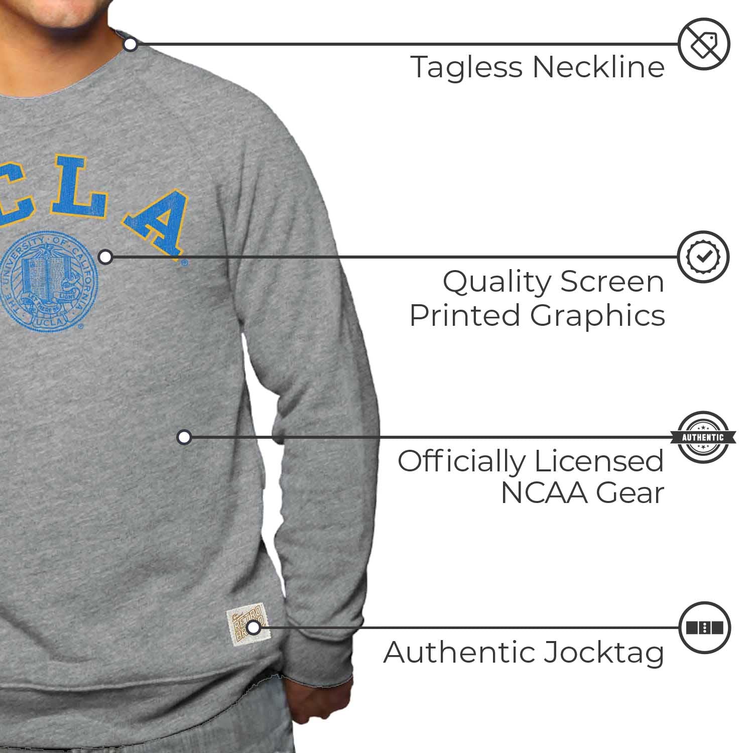 UCLA Bruins College Gray University Seal Crewneck Sweatshirt - Gray