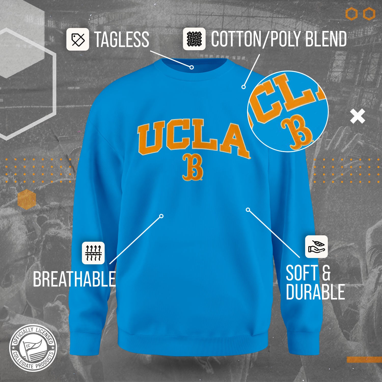 The UCLA Bruins Adult Tackle Twill Crewneck Sweatshirt is super comfortable, runs true to size, and is great for showing off your school pride. All crewneck pullovers are a fan favorite and look fresh after many years. The Bruins crewneck sweatshirt has a unisex fit that is ideal for both men and women. The embroidered university logo and name will stay crisp wear after wear. Our college crewneck sweatshirt is ideal when thrown over a t-shirt for football tailgates, games, when the temperature drops, or when you just want to show off your team spirit! The university crewneck sweatshirt is the perfect gift for any college student, upcoming graduate, alumnus or sports fan. Made with quality material, the double letter embroidered university logo is made of precise laser cut appliques applied with heat that will stay crisp wear after wear. All logos and colors are NCAA officially licensed. Our UCLA Bruins crewneck is essential collegiate apparel for showing off your school or team pride. Lightweight college crewneck sweatshirt is made from a dual blend of 50% cotton and 50% polyester that is ideal for that tailgate or game day when the temperature drops. Cheer on your Bruins in style!