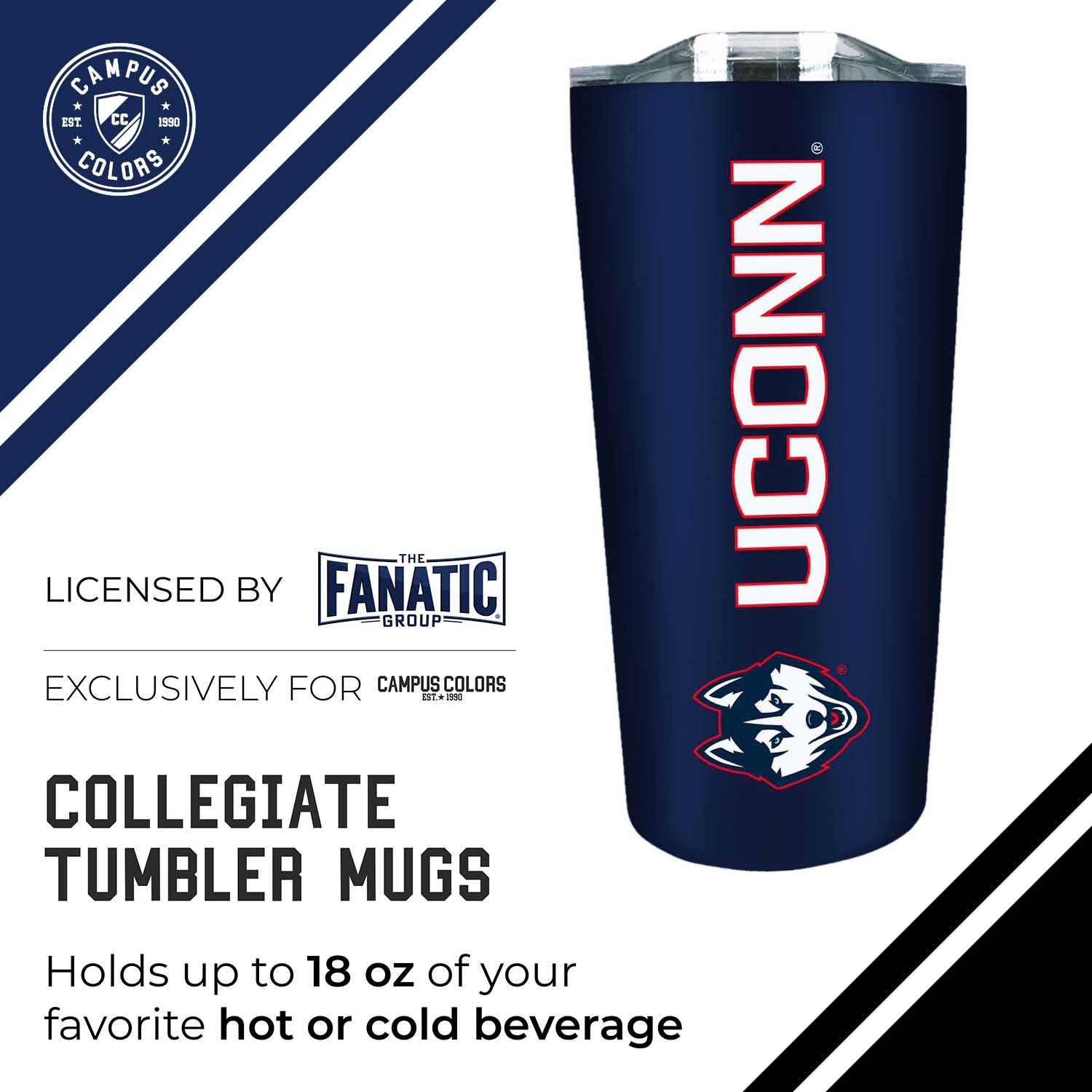 Our stainless steel tumbler mugs are designed for constant use in any type of setting! At a sports game? These insulated tumblers are compact and can fit in most cup holders. On the move? Our contoured spout makes it easy to sip on the go! Your tumbler is there to compliment your UCONN sweatshirt when you need to stay warm and there when you're looking for an ice-cold refreshment. No matter the setting, show your school pride while properly and efficiently preserving the desired temperature of your beverage! This UCONN Huskies travel mug also makes a great gift if you're looking to give someone a cool Huskies novelty, this UCONN Huskies travel mug compliments any kind of Huskies apparel. Combine the UCONN water bottle with a UCONN pillow, a UCONN face mask, and a UCONN blanket and give a whole haul of Huskies gear to your favorite UCONN Huskies alumni! All of our products feature the official team colors, logos and lettering. We don't skimp on quality in any way. The colors are always vibrant and the graphics are always accurate and brimming with team spirit.
