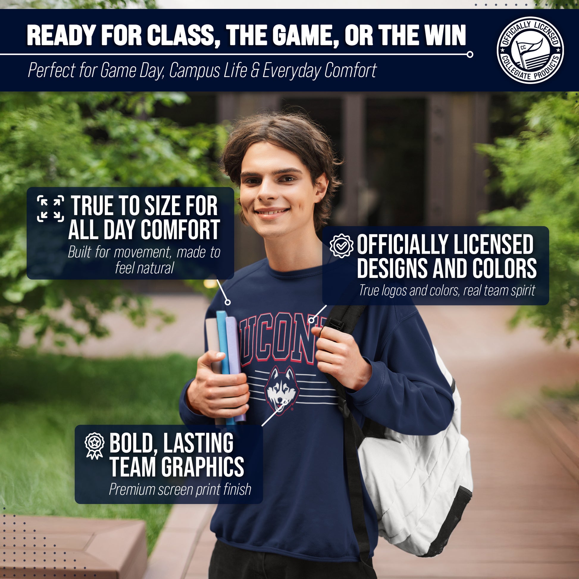 UCONN Huskies NCAA Adult Unisex Overtime Classics Crewneck Fleece Sweatshirt - Navy