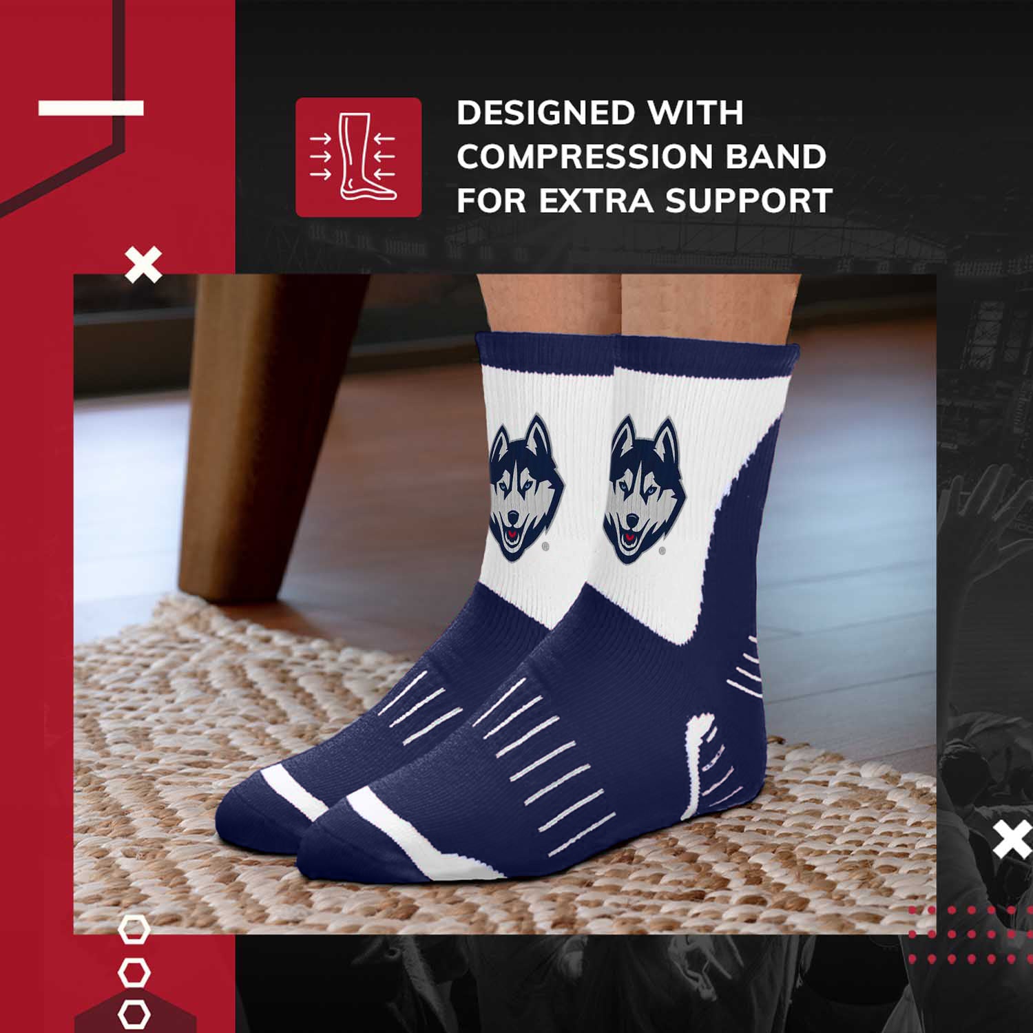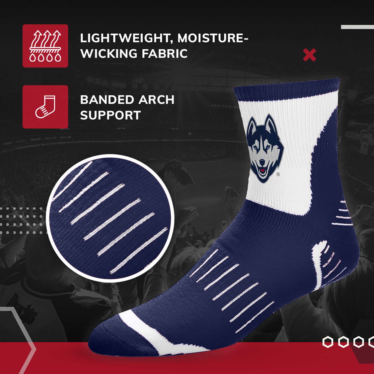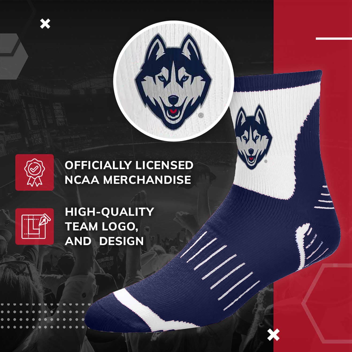 UCONN Huskies Youth Surge Crew Socks Sports Fan For Boys and Girls with Logo - Navy