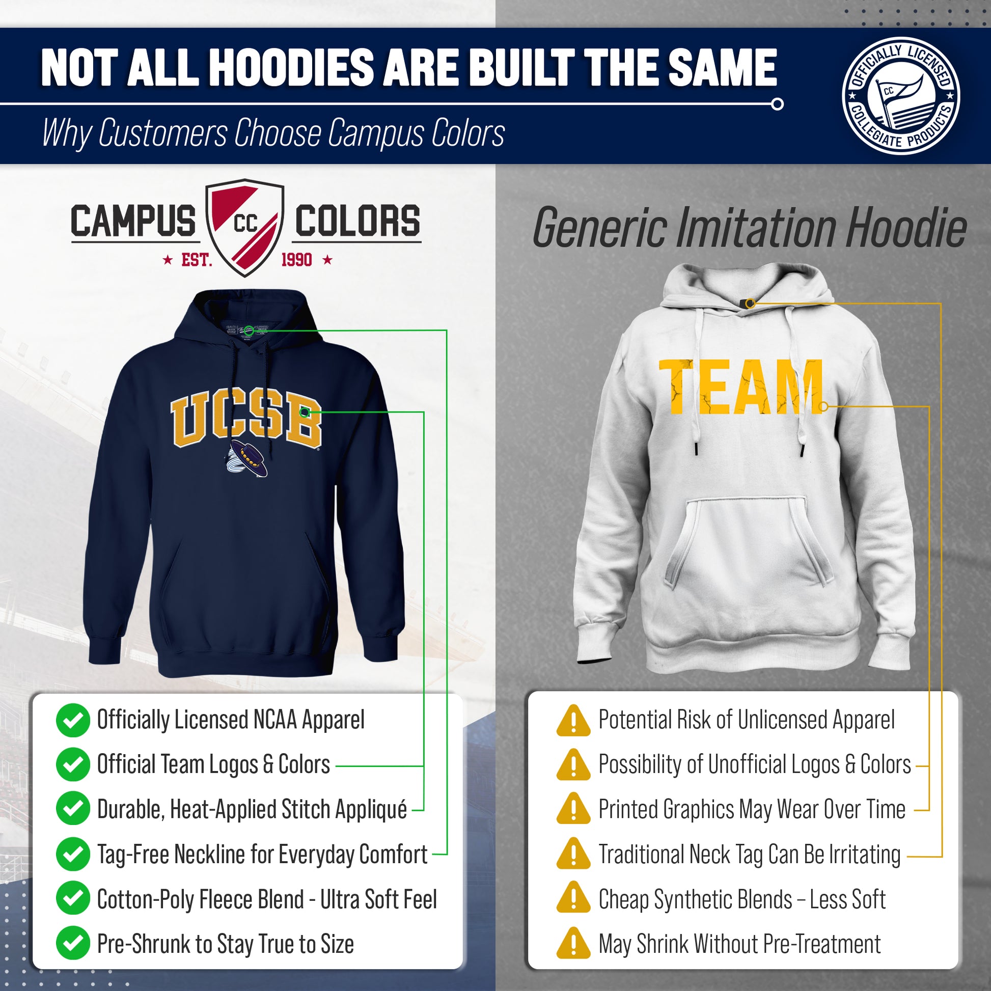 The UCSB Gauchos Adult Tackle Twill Hooded Sweatshirt is super comfortable, runs true to size, and is great for showing off your school pride. Hooded sweatshirts are a fan favorite and look fresh after many years. This Gauchos sweatshirt has a unisex fit that is ideal for both men and women. The school logo sweatshirt is ideal when thrown over a t-shirt for football tailgates, games, when the temperature drops, or when you just want to show off your team and school spirit! The hooded sweatshirt is an ideal gift for any college student, upcoming graduate, alumnus or sports fan. Made with quality material, the double letter embroidered university logo is made of precise laser cut appliques applied with heat that will stay crisp wear after wear. Each fleece hoodie is officially licensed so you can represent the Gauchos knowing you are wearing the real thing! Our hoodie is essential for protecting yourself from the elements on gameday or otherwise. The adjustable hood protects your head and ears from the cold or rain, and the pocket pouch will keep your hands warm. Pre-shrunk hoodie is made of 50% cotton and 50% polyester.