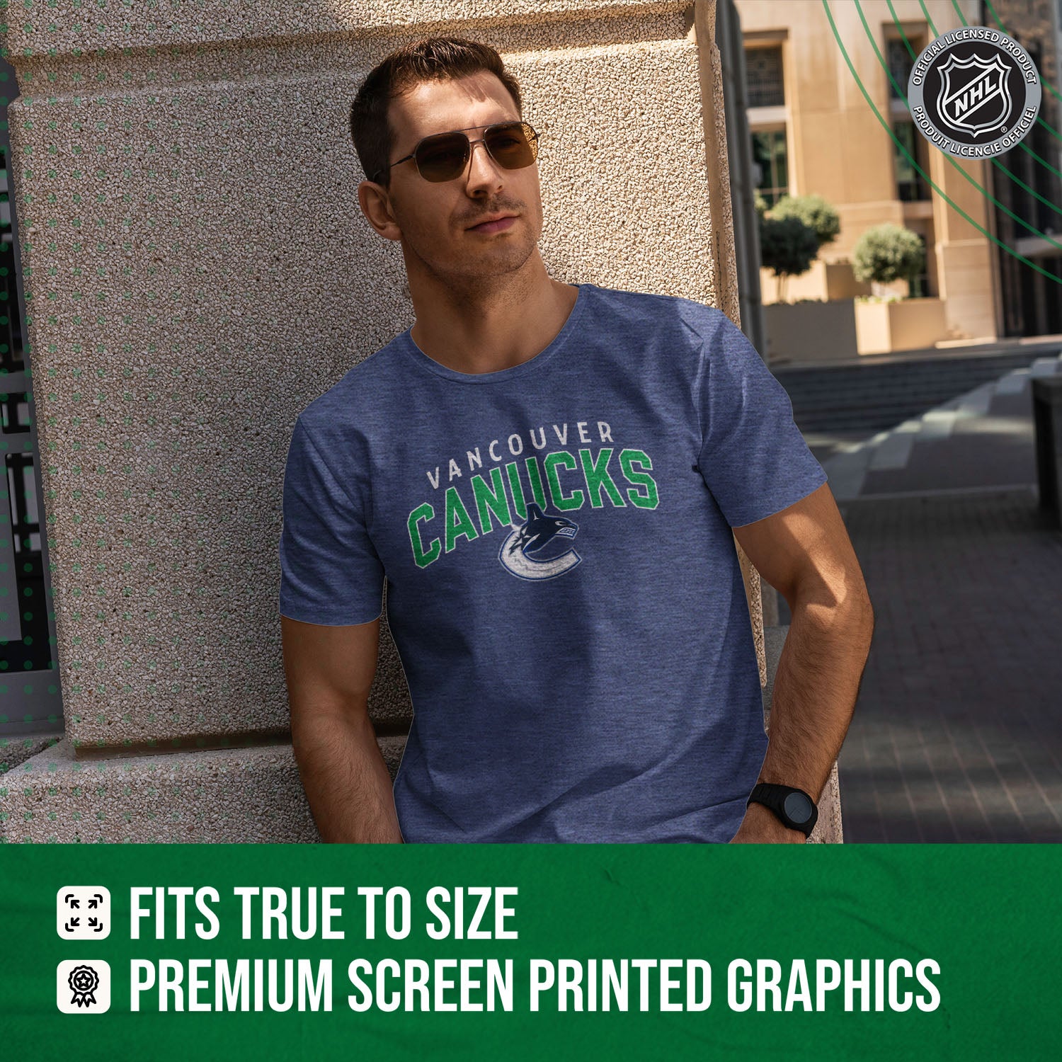 Score with Team Fan Apparel, the ultimate destination for officially licensed NHL apparel for men and women. Design and printed in the USA, we use only the highest quality screen printing techniques to bring you the most comfortable, durable, and stylish clothing possible. Go ahead and show your team pride at the big game or any time! This premium Vancouver Canucks heather t-shirt fits both male and female adults and comes in small, medium, large, XL, and XXL. So needless to say, it fits Canucks fans of all types! Maybe you aren't a hockey fan but you know someone who is? Don't worry! This high-quality t-shirt is soft, lightweight, breathable and a GREAT gift for any birthday, graduation, anniversary, Father's Day, Mother's day, you name it! So, if you want to stand out as the #1 fan at the next big game or watch party, you're going to want to be wearing one of these hockey t-shirts.