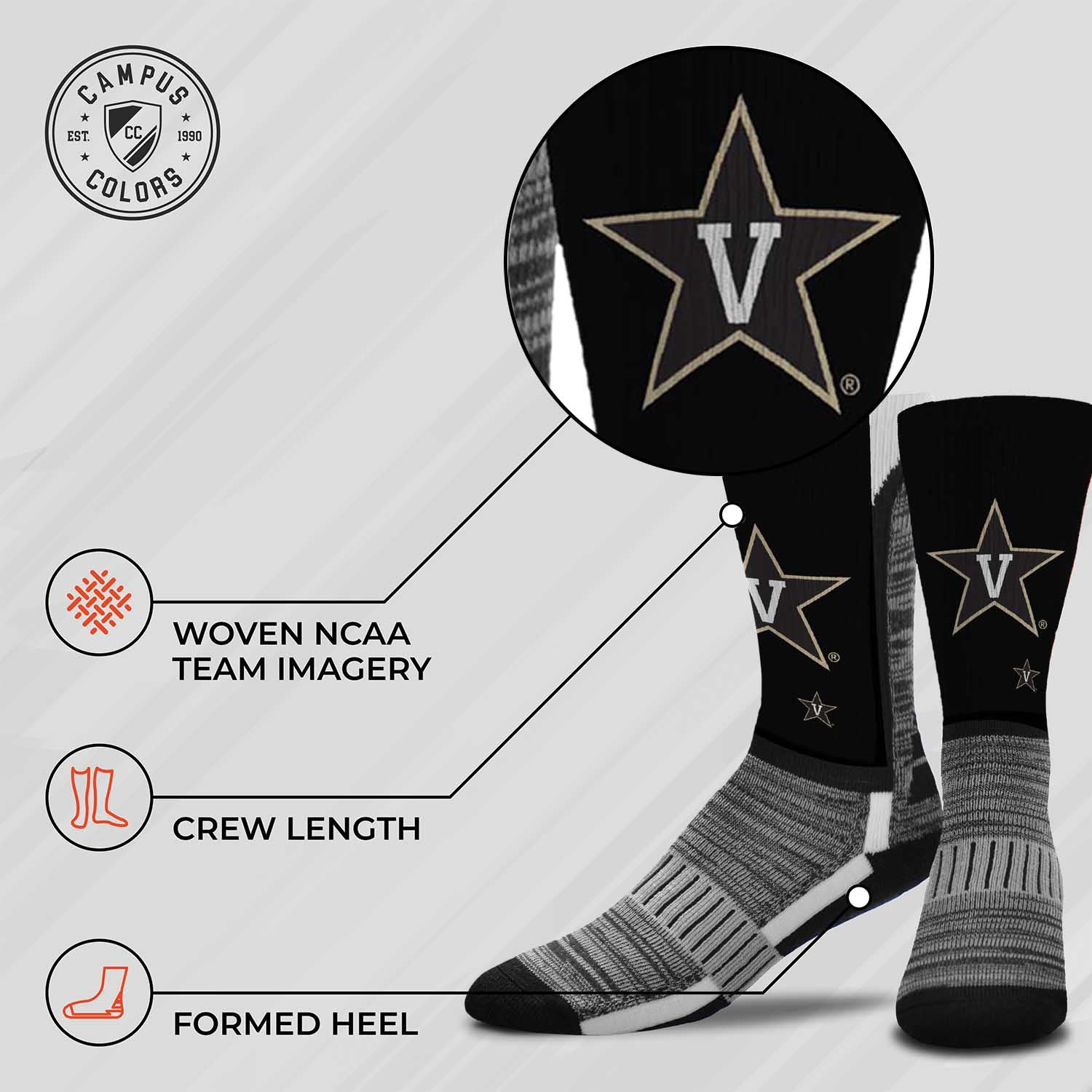 Vanderbilt Commodores NCAA Adult State and University Crew Socks - Black