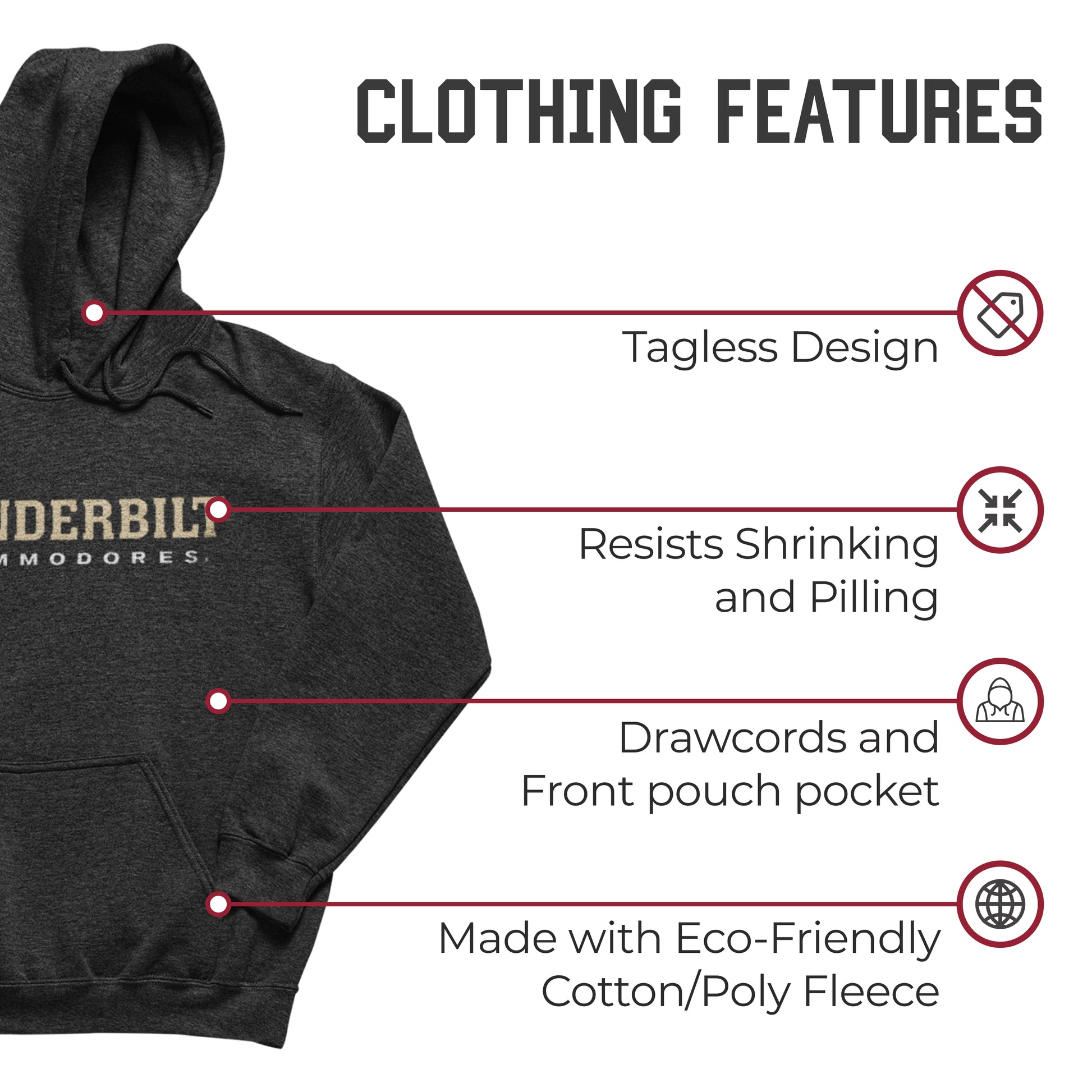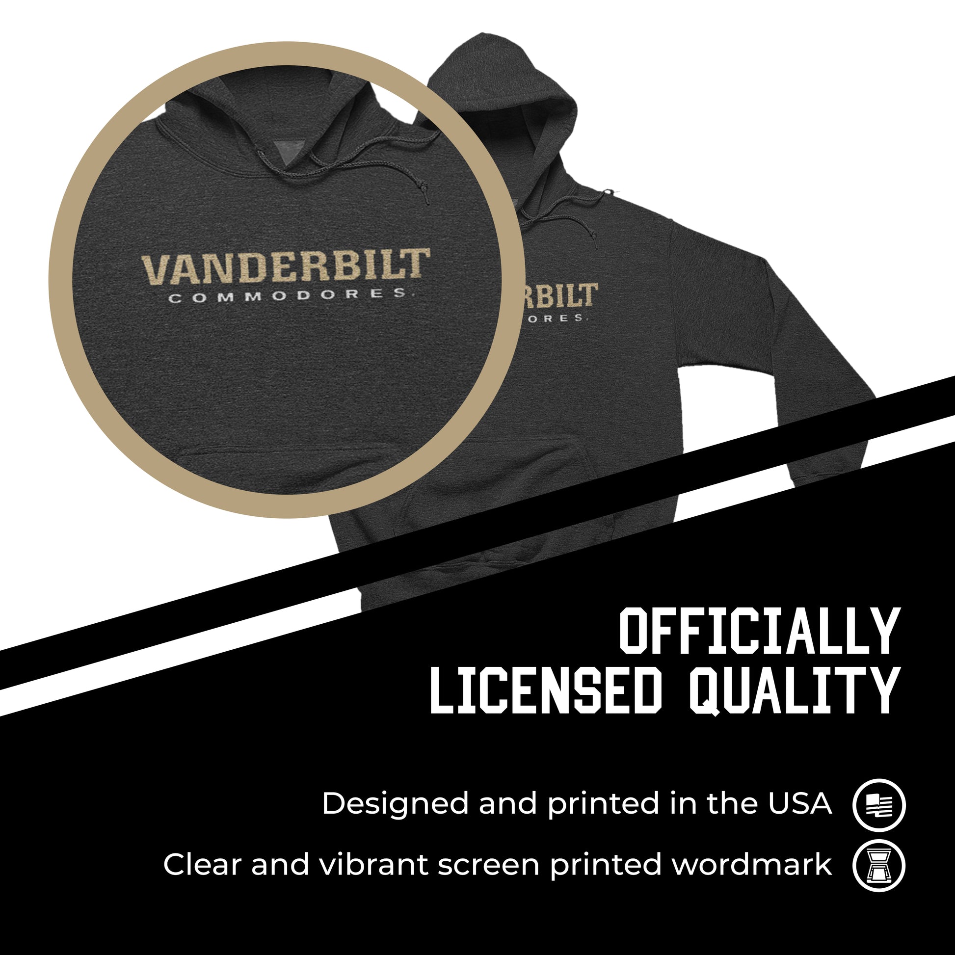 Vanderbilt Commodores NCAA Adult Cotton Blend Charcoal Hooded Sweatshirt - Charcoal