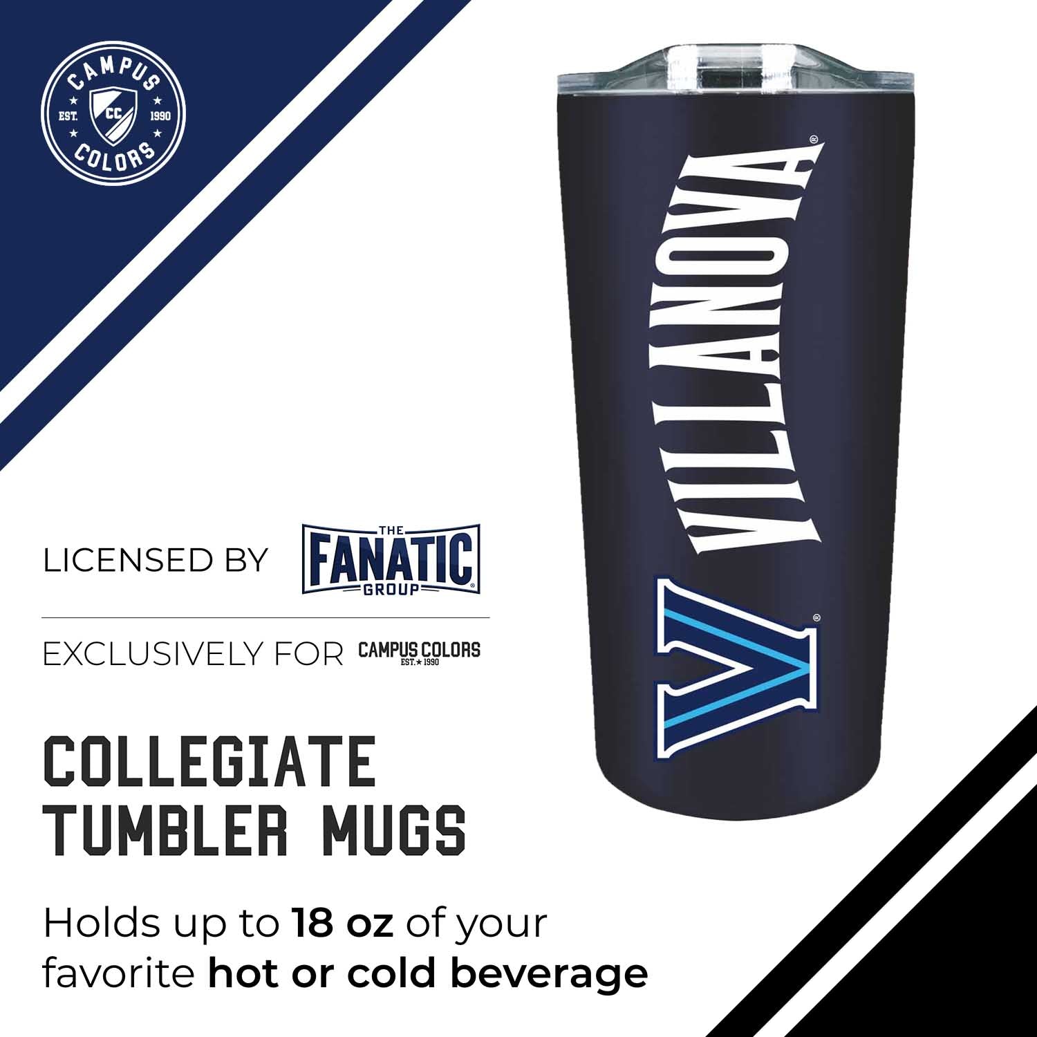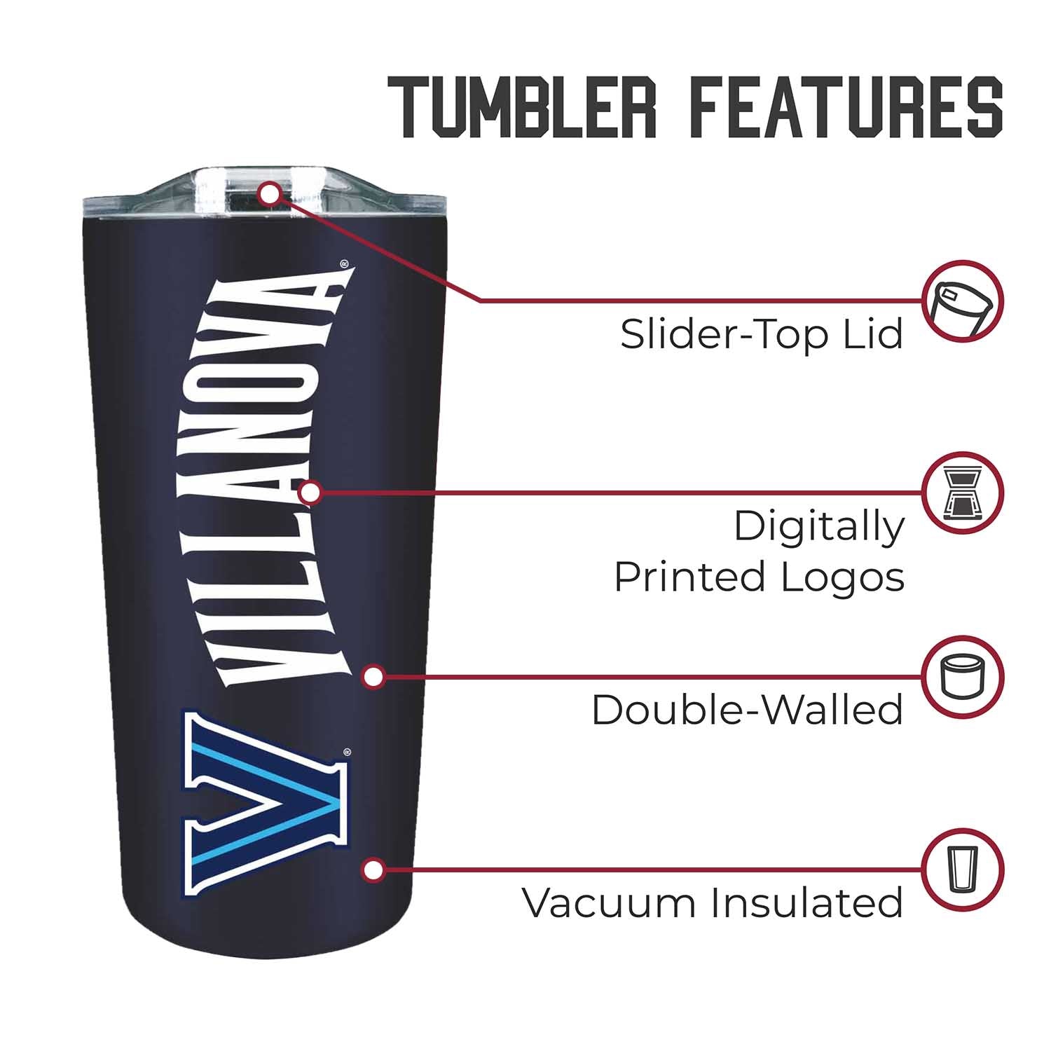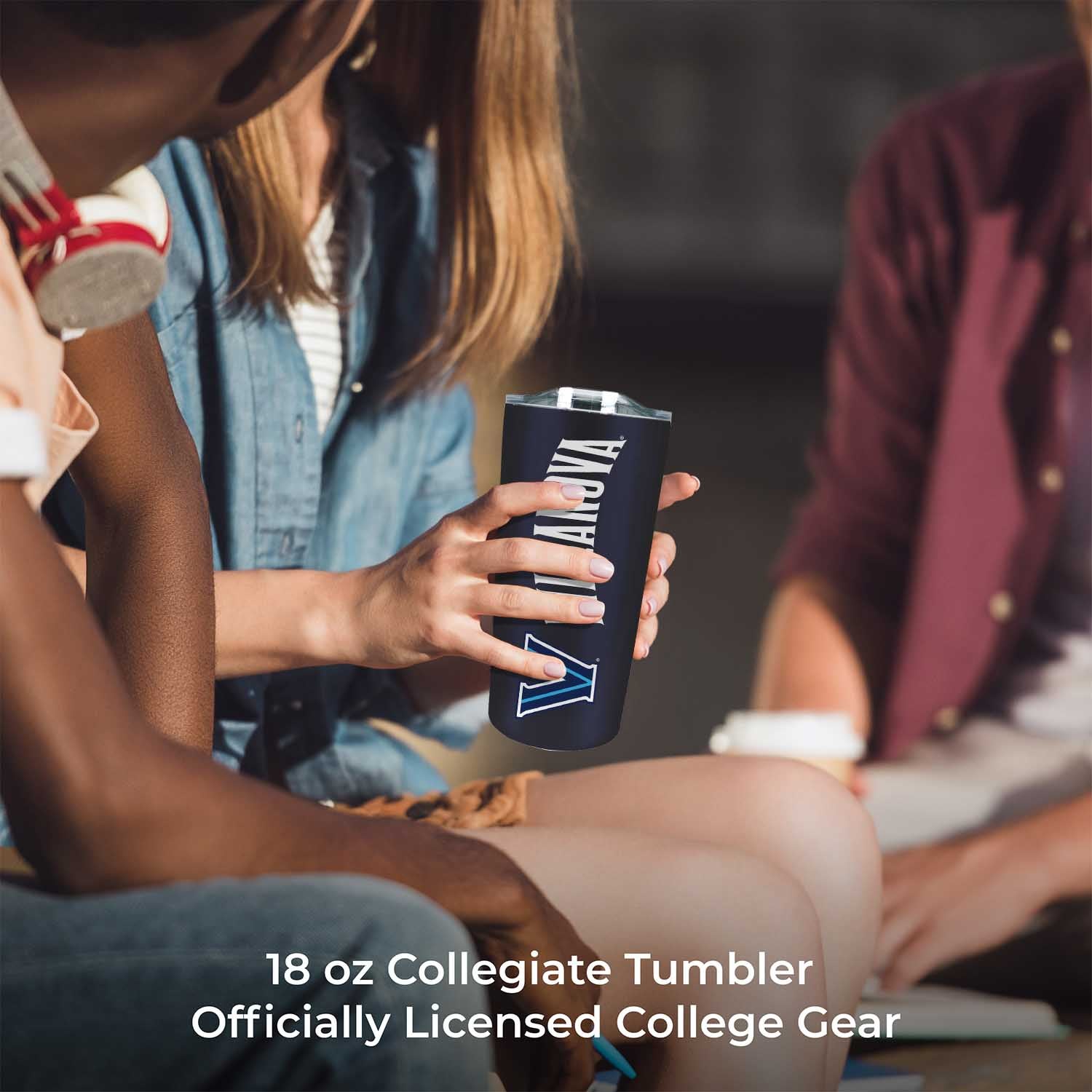 Our stainless steel tumbler mugs are designed for constant use in any type of setting! At a sports game? These insulated tumblers are compact and can fit in most cup holders. On the move? Our contoured spout makes it easy to sip on the go! Your tumbler is there to compliment your Villanova sweatshirt when you need to stay warm and there when you're looking for an ice-cold refreshment. No matter the setting, show your school pride while properly and efficiently preserving the desired temperature of your beverage! This Villanova Wildcats travel mug also makes a great gift if you're looking to give someone a cool Wildcats novelty, this Villanova Wildcats travel mug compliments any kind of Wildcats apparel. Combine the Villanova water bottle with a Villanova pillow, a Villanova face mask, and a Villanova blanket and give a whole haul of Wildcats gear to your favorite Villanova Wildcats alumni! All of our products feature the official team colors, logos and lettering. We don't skimp on quality in any way. The colors are always vibrant and the graphics are always accurate and brimming with team spirit.
